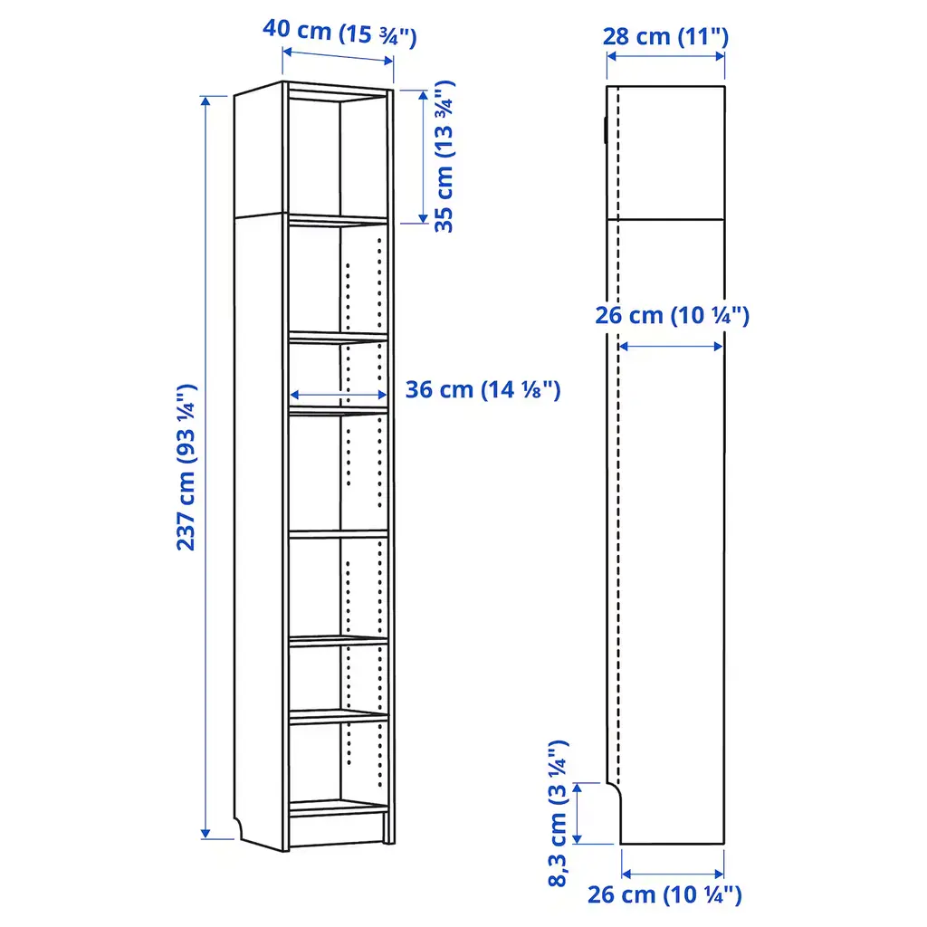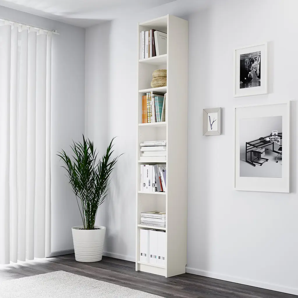 BILLY Bookcase - white 15 3/4x11x93 1/4 ". This bookcase has a height extension unit, allowing you to make the most of the wall area. Adjustable shelves can be arranged according to your needs.