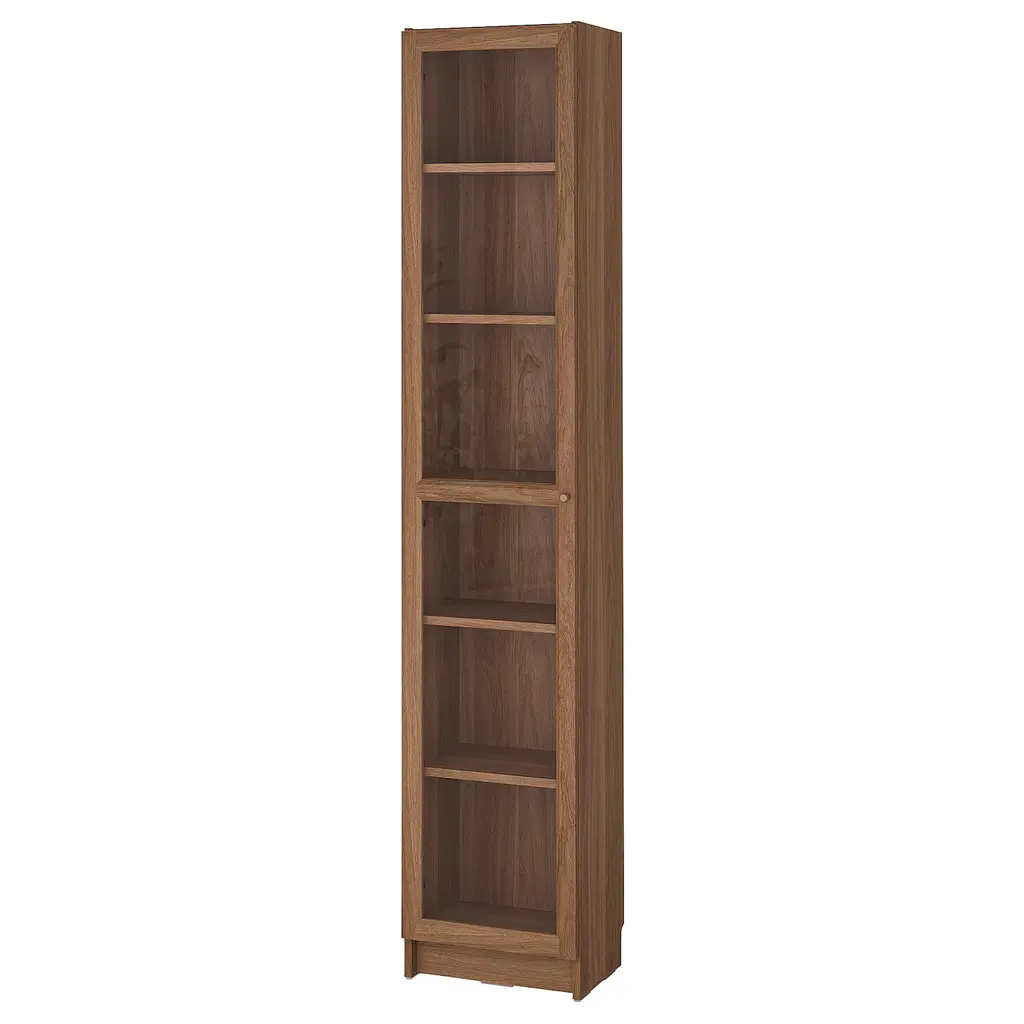 BILLY Bookcase with height extension unit - oak effect 31 1/2x11x93 1/4 ". Safety strap for mounting to wall included. Keep in mind that you need enough space between the top of the furniture and the ceiling to be able to anchor the product to the wall.