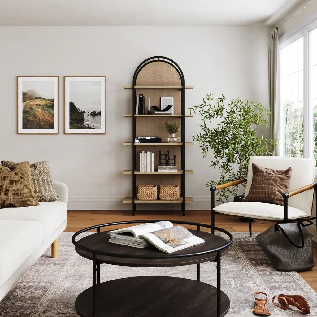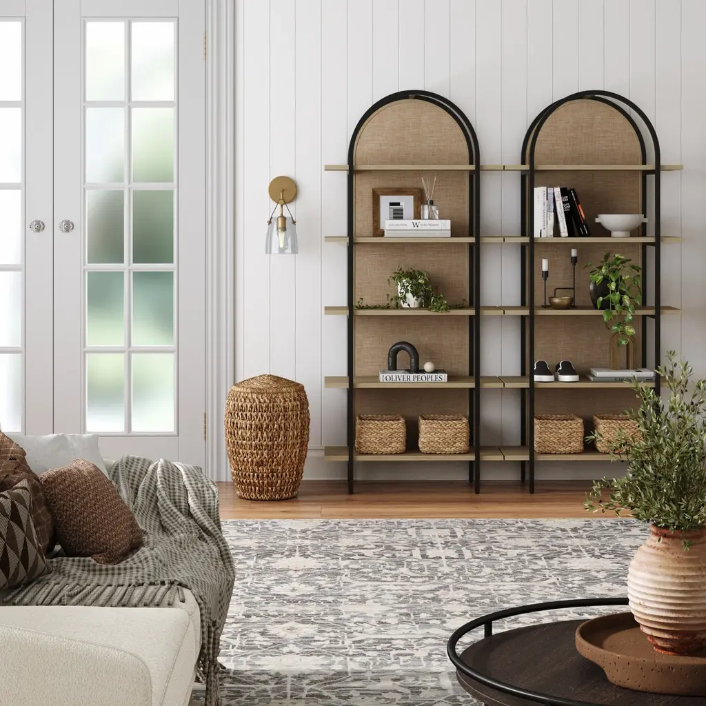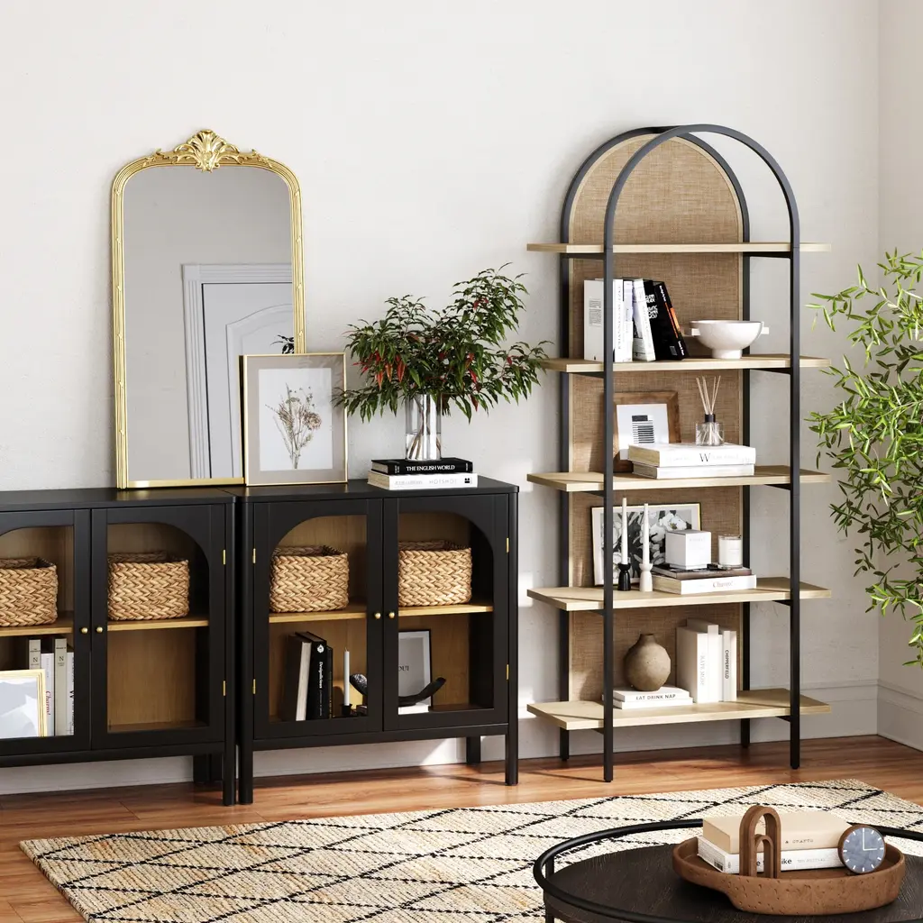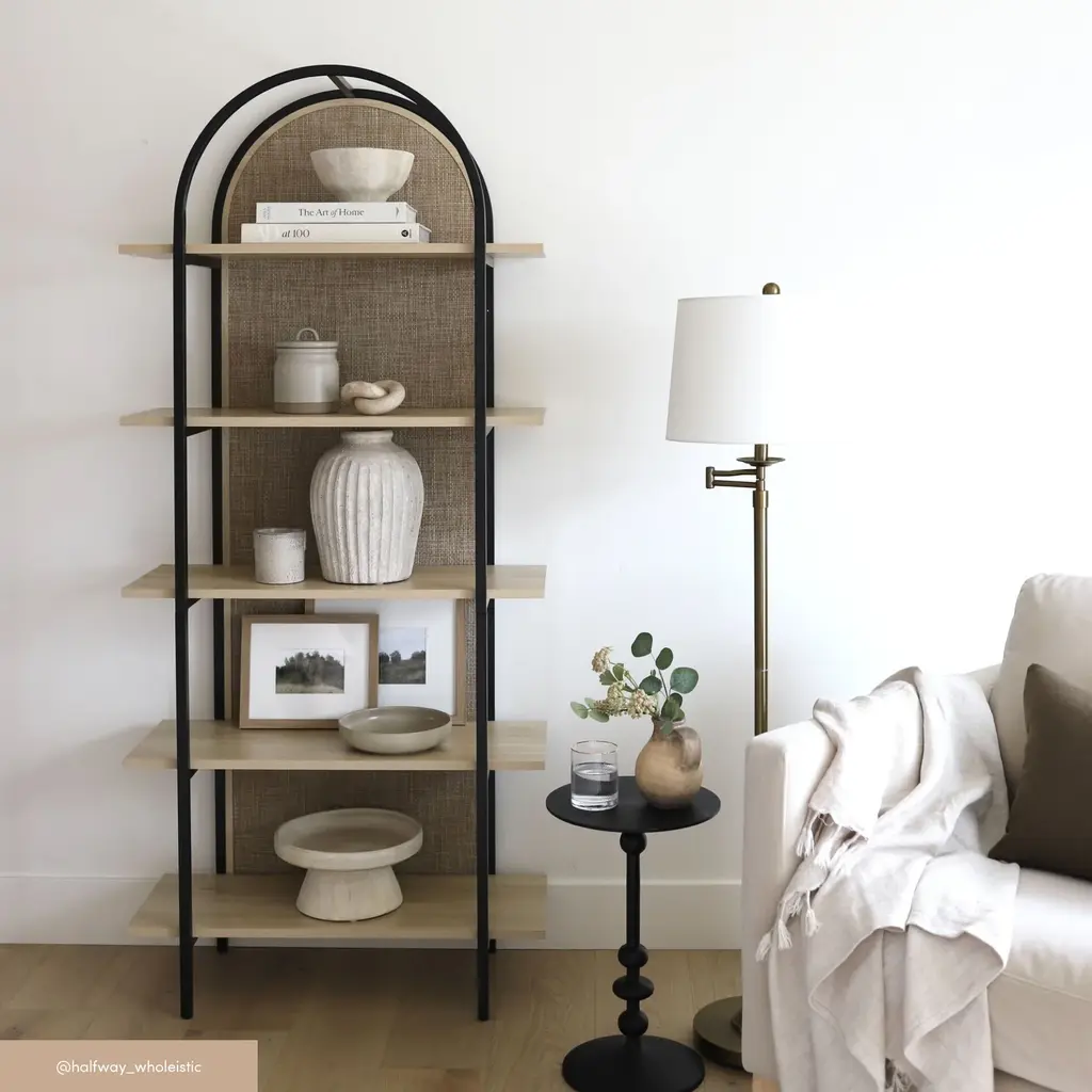 Get ready to fall head over heels for the Amara Bookshelf—the epitome of boho elegance! Constructed with love, this bookshelf features a sleek metal frame with an eye-catching geometric arch design in a trendy black finish. Its five thick shelves are perfect for showcasing your cherished books and adding a personal touch to your space. The back panel is crafted with on-trend durable textilene rattan, infusing your room with that irresistible boho vibe. Safety is a priority too, as we include a tip restraint kit to keep your bookshelf securely anchored to the wall. Let our Amara Bookshelf be the answer to your home's storage and style needs!