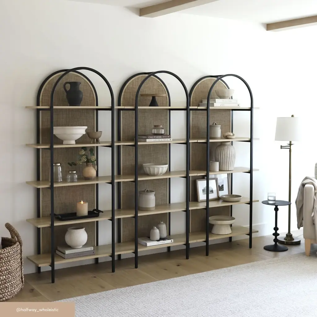 Boho Rattan & Wood Arched Bookshelves (Set Of 3)