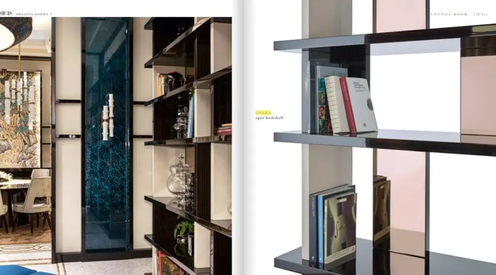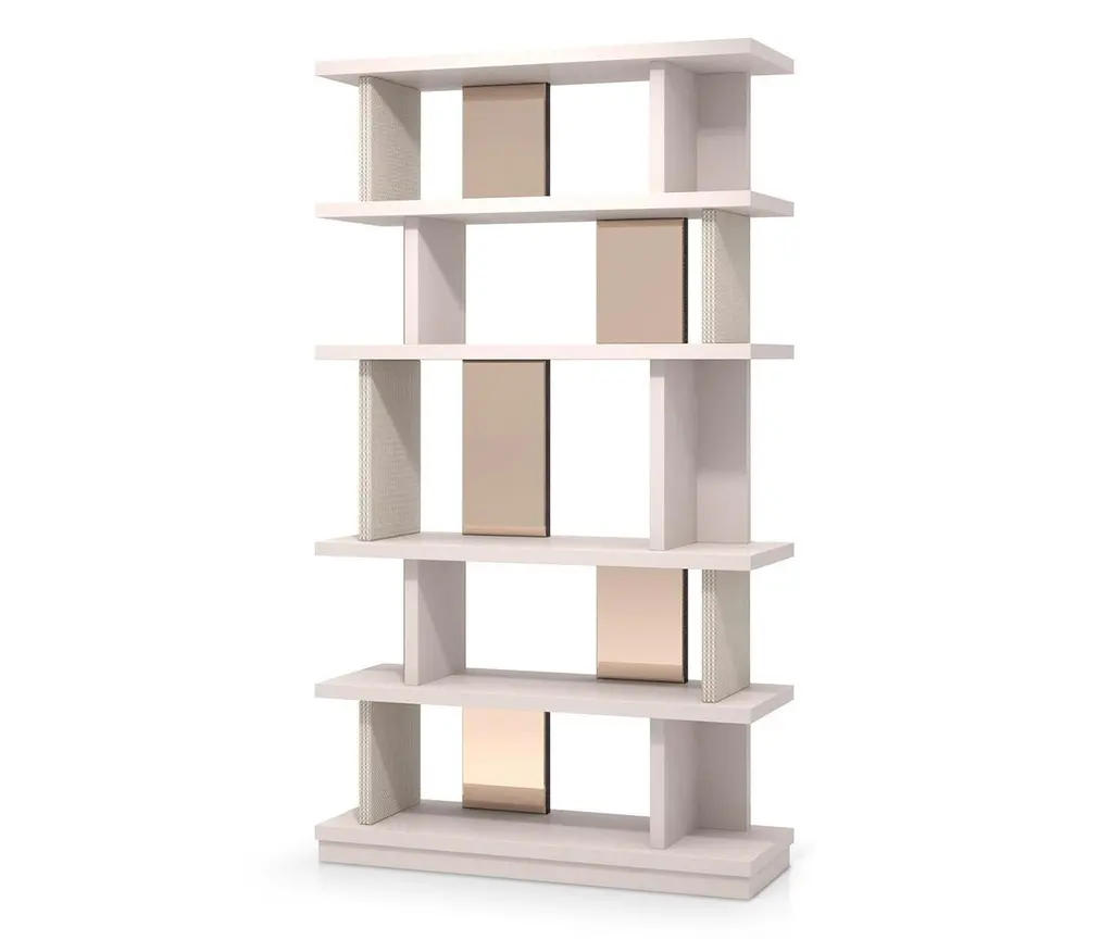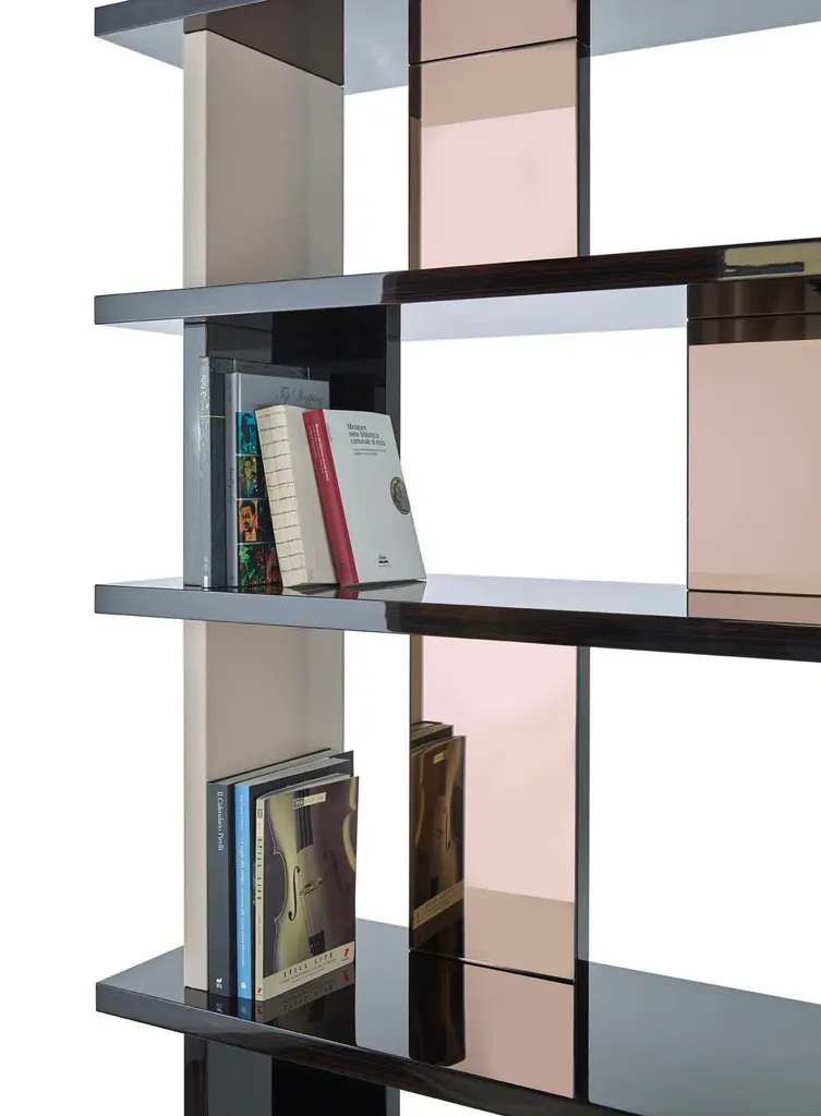Bookshelf Polished Ebony Finish Back And Side Insert Leather And Bronzed Mirror