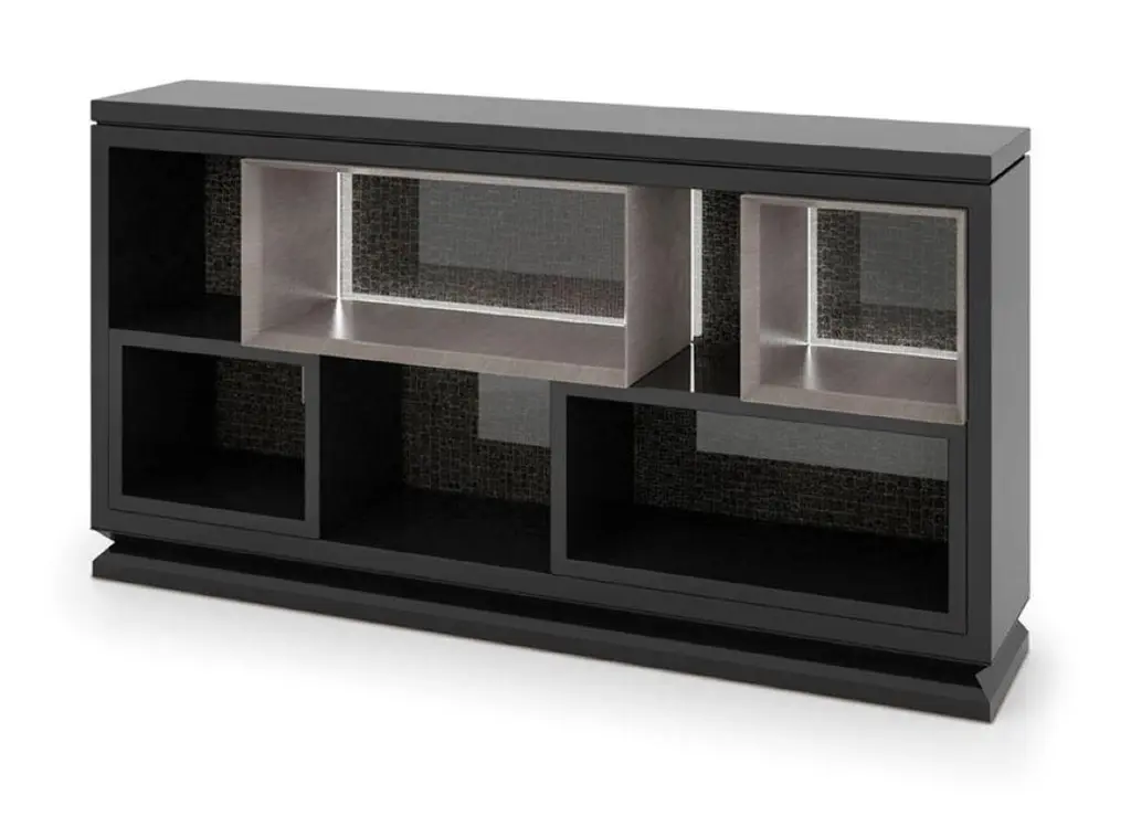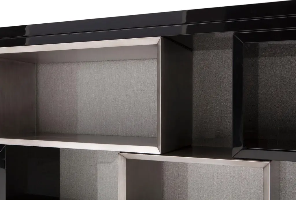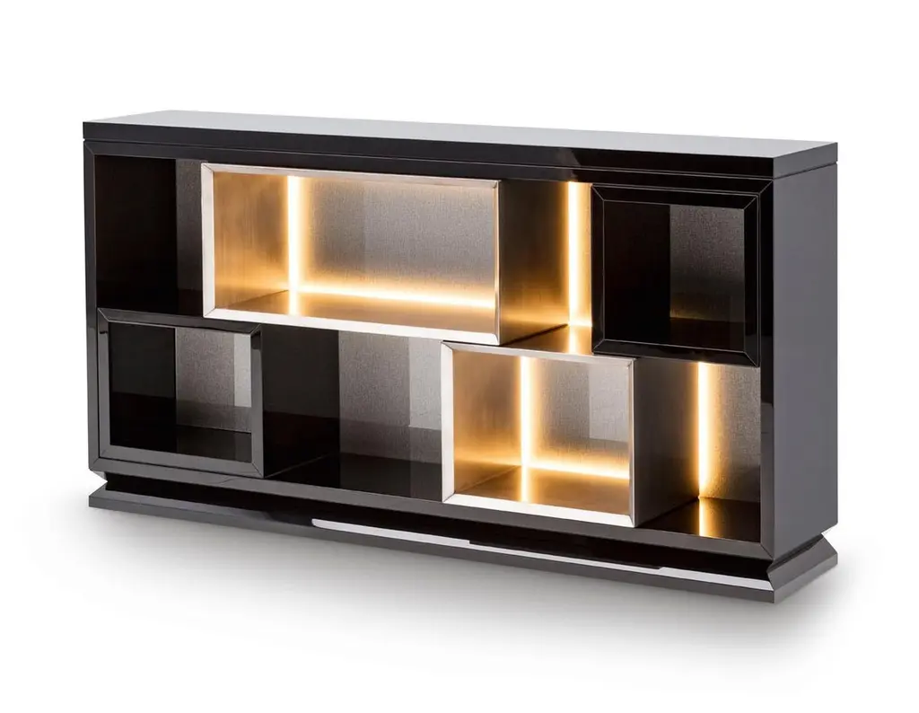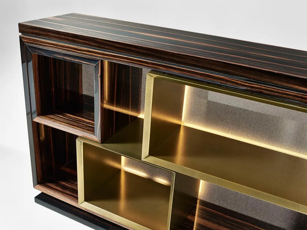 Bookshelf Structure Wood Ebony Veneered Back In Vetrite With Strip Led
