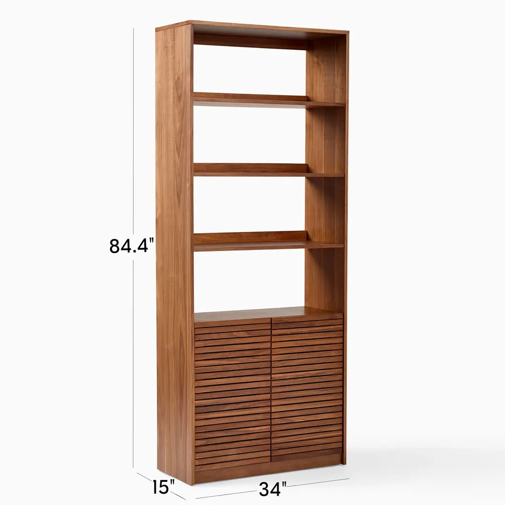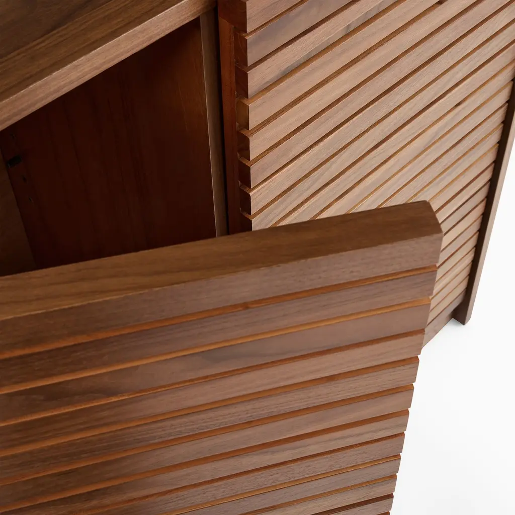 Slatted style is a nod to the '60s and '70s. Versatile open and closed storage features. Sits easily with other pieces from the collection. Contract Grade, so you know it's built to last.