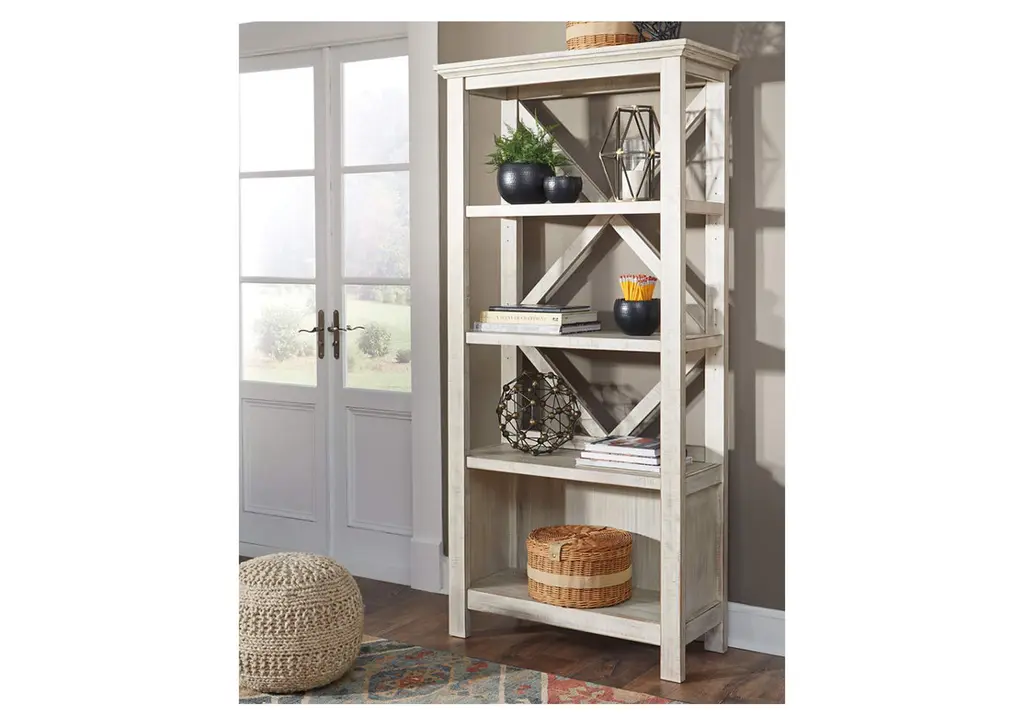 Looking for a fresh approach to modern farmhouse living? The Carynhurst bookcase works on so many levels. Clean-lined profile with crossbuck back never goes out of fashion. Whitewash finish is a mastery in subtle sophistication. Weight 98.000 lbs. (44.1kgs.)