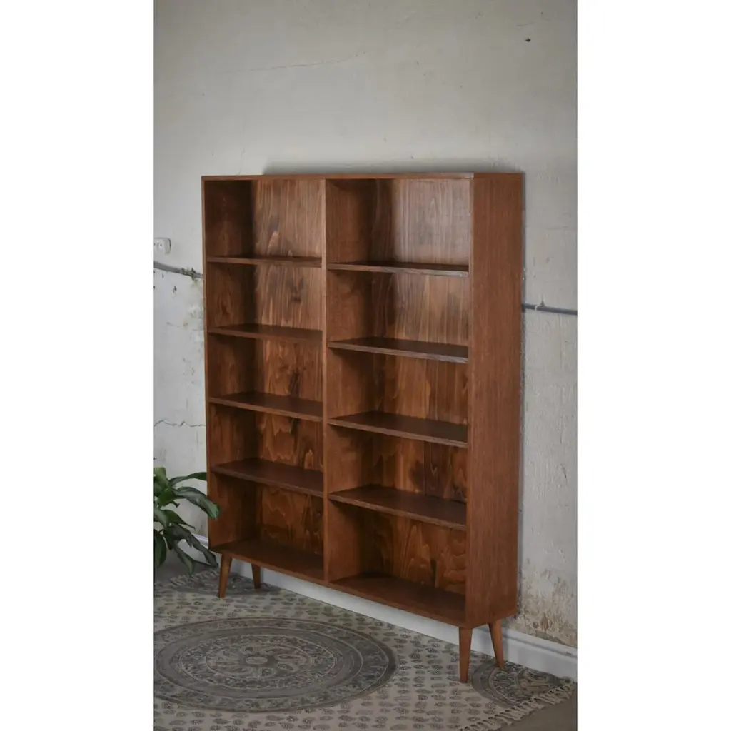 Classy Medium Bookshelf by PastformDimensions: D 25 x W 100 x H 165 cm.Materials: Stained and varnished wood.Available in different wood color finishes: Whiskey, Rum, BPA, Nobel, Brandy, Schwarz, Cognac, Dark Brown, Nevada, and Natura. Available in four different widths: 80/100/120/140 cm. Prices may vary. Please contact us.A perfect bookshelf for bookworms, fans of decorative trinkets, collectors of family photographs, and all those who are looking for a piece of beautiful and functional furniture for their apartment or office. The presented model is stable and capacious, and its shelves can take on a lot of weight. Divided into two parts, four shelves in each, it can stand both in a home office and in a bedroom, living room, or hall.Design of the 1950s/1960s Was charming and sophisticated – and this is why it inspired us. Our furniture refers to it, deriving the best from the retro style. The diagonal, rolled legs and characteristic color are details that surely appeal to any enthusiast of this design.The furniture is entirely made of wood covered with oak veneer. Our furniture is made of only natural materials, so individual models may differ in the arrangement of grain and color. The Classy Bookshelf is finished with stain and varnish.Rooted in a good traditionThe Pastform Furniture studio dates back to the 1990s. Having in mind the idea of a traditional family company, Dawid Gełeta established a carpenter’s shop in 1997. The company specializes in the manual production of utility furniture. Times have changed and with them, fashion has changed. In 2016 we decided to change the direction, following the growing demand for vintage furniture.My name is Mateusz Gełeta, I am the son of the carpenter who founded the company. From an early age, I have watched my dad’s work. He put his whole heart into creating furniture, polishing every detail with his strong hands and making sure that nothing escaped our attention before sending the product to the customer. He made sure that every piece of furniture was perfect and refined. We remain true to these principles.Following the blow, I decided to create a harmonious combination of modern quality with the classic style of the 1960s. This is why I designed and created a unique collection of wonderful furniture, which, in addition to its well-thought-out functionality, also creates a perfect design and composes original arrangements.The golden age of interior designIn the 1960s interiors used to take on a very characteristic touch. All over the world, this style was called a mid-century modern, locally it was simply – retro furniture. Simple, elegant minimalistic form, without unnecessary decorations and splendor. Decorating with the idea of an uncomplicated composition, it allows for an undisturbed selection of the arrangement accessories and emphasizes a high level of functional comfort. One might say – a perfect piece of furniture. Comfortable, hiding surprisingly many items despite quite neat dimensions, made of noble species of wood and created by hand, with a focus on carefully refined details. No wonder its popularity is growing so much.Unique, refined, with a soulEach piece of the Pastform collection represents a unique style. Thoughtful concept of usable comfort, refined details, carefully selected raw materials, and proven accessories. We use only high-quality boards which we veneer with oak, American walnut, and other durable wood species. They are carefully oiled with the best, hard, ecological oil waxes, giving the furniture its final shape. This technology brings out the natural beauty of wood, exposes the grain and unique design of each piece, highlights the beautiful color, and allows to achieve timeless durability.This is how unique, thoughtful, and refined furniture with a soul is created.Thinking about futureWe are trying to positively create the world of which we are a part, contributing to a better tomorrow. We cooperate with local suppliers, support small companies and production plants, care for ecology, and respect the needs of the land. We always strive to establish long-lasting, based-on-trust relationships with customers and contractors.Flexible, with openness and heart on handWe sincerely like what we do. Playing with the shape, structure, and texture of wood is fascinating. Creating new arrangements and coming up with innovations that will meet your expectations. We are proud of our products and we are happy to present you with our collection of refined furniture.All our vintage furniture can be made on request – fulfilling the boldest dreams and fantasies. See our offer and if you want to know more, feel free to contact us. We are waiting for you!