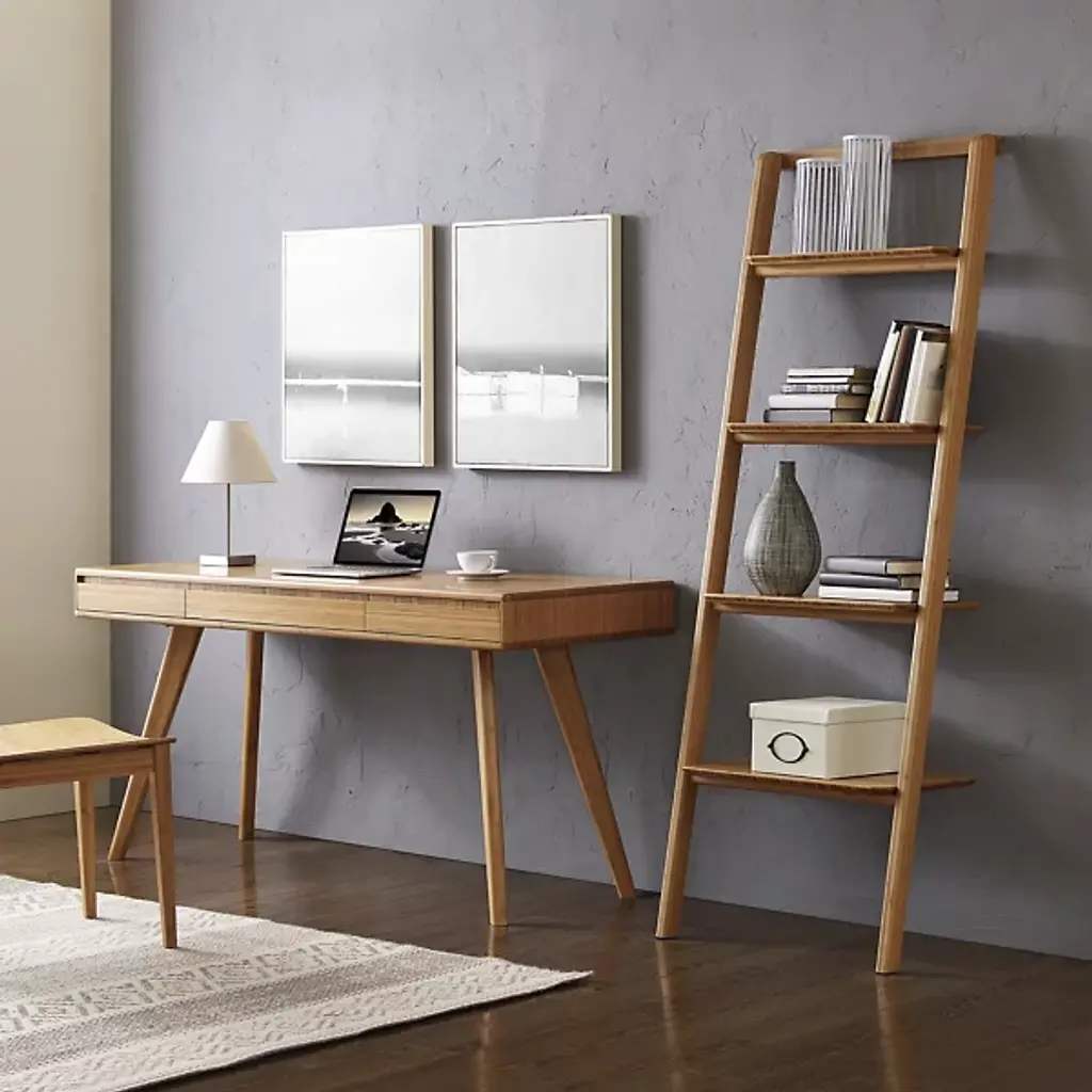 Minimalist style and eco-friendly construction. The Currant Leaning Bookshelf from Greenington brings organization to bedrooms, living rooms, or offices where space is in short supply. This leaning shelf’s simple design allows it to blend in with a lot of different decors. It’s made out of 100% solid Moso bamboo, an extremely environmentally friendly and renewable resource that also happens to be 20% harder than red oak. It has four shelves held within the leaning frame that balances against the wall.