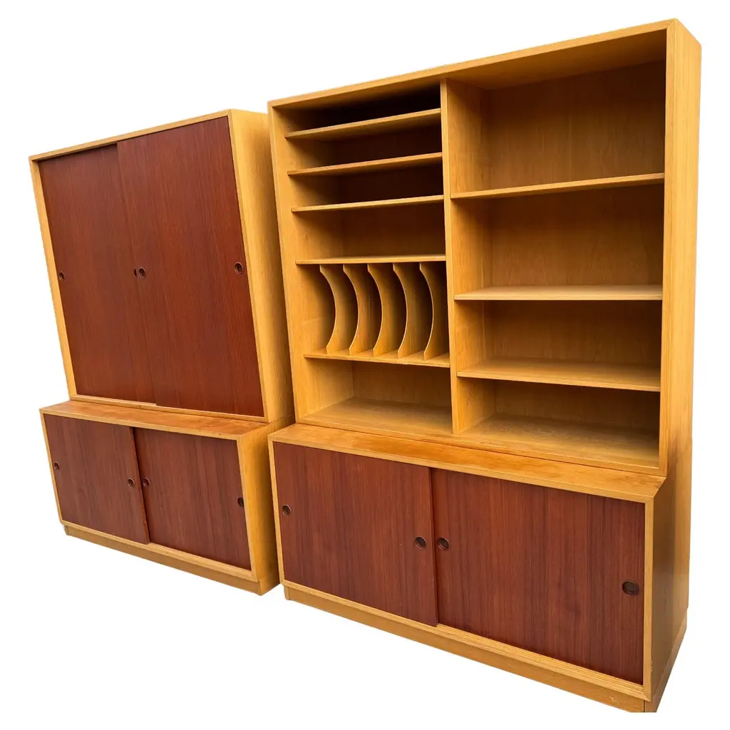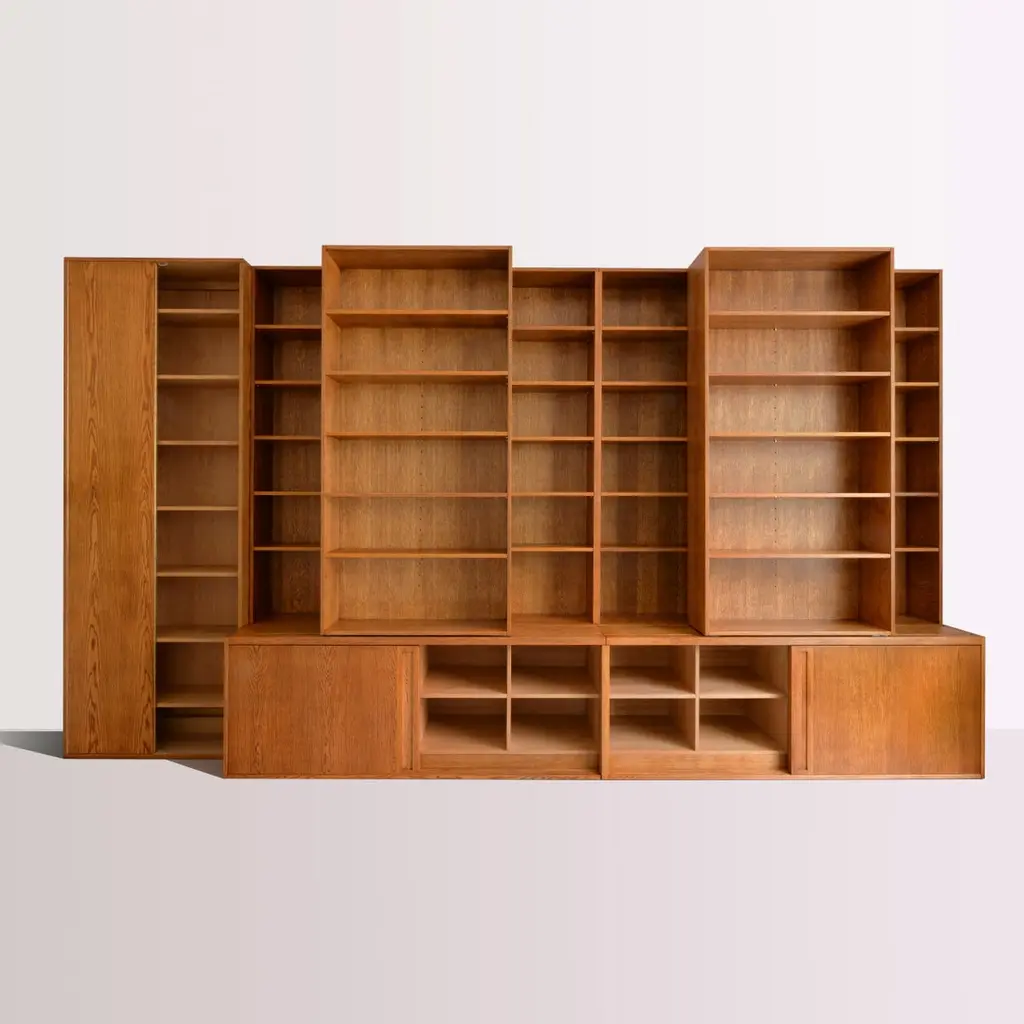 Customized Bookshelf In Handcrafted Wood With Sliding And Adjustable Shelves
