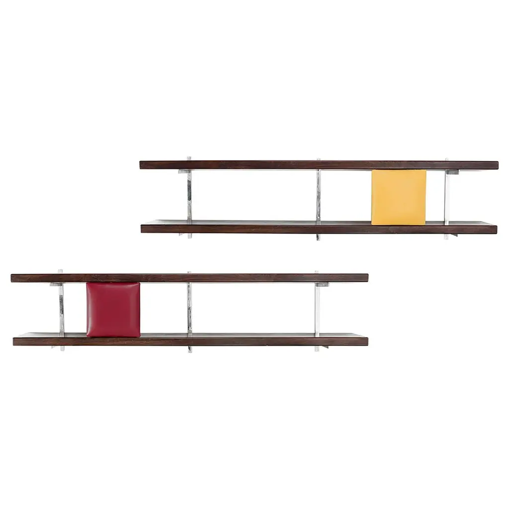 Thin perpendicular supports fall from the ceiling to be anchored to the wall in delicate curves. Like climbing vines, they create a new kind of suspended architecture. Each branch becomes a support for one or more shelves in a modular composition with clear botanical inspiration. The gaze bounces between the dark hues of the Gabon Ebony shelves and the luminous supports in brass, copper and iron, ennobled by De Castelli finishes.Additional Information:Material: Copper shelves with Ebony Gabon wood shelvesFinish: Orbitale Delabré copper G4Dimensions: W. 185 x D. 32 x H. 198.5 cmAvailable in other top finishes: Orbitale Delabré stainless steel G2, Orbitale DeLabré brass G3Available in other size options: Small