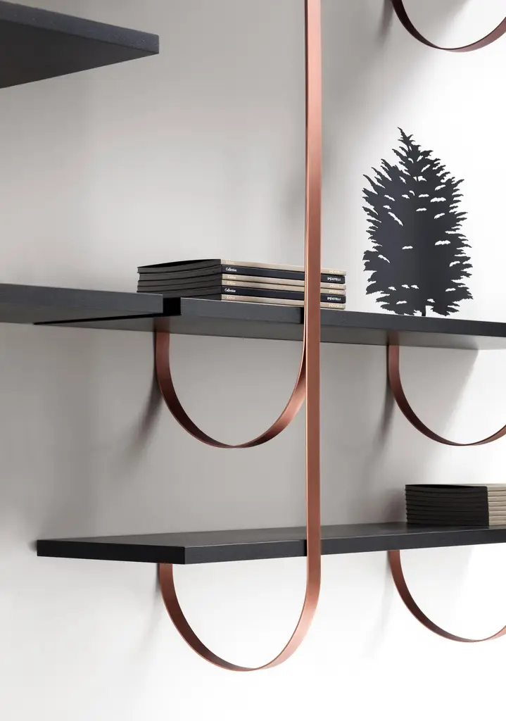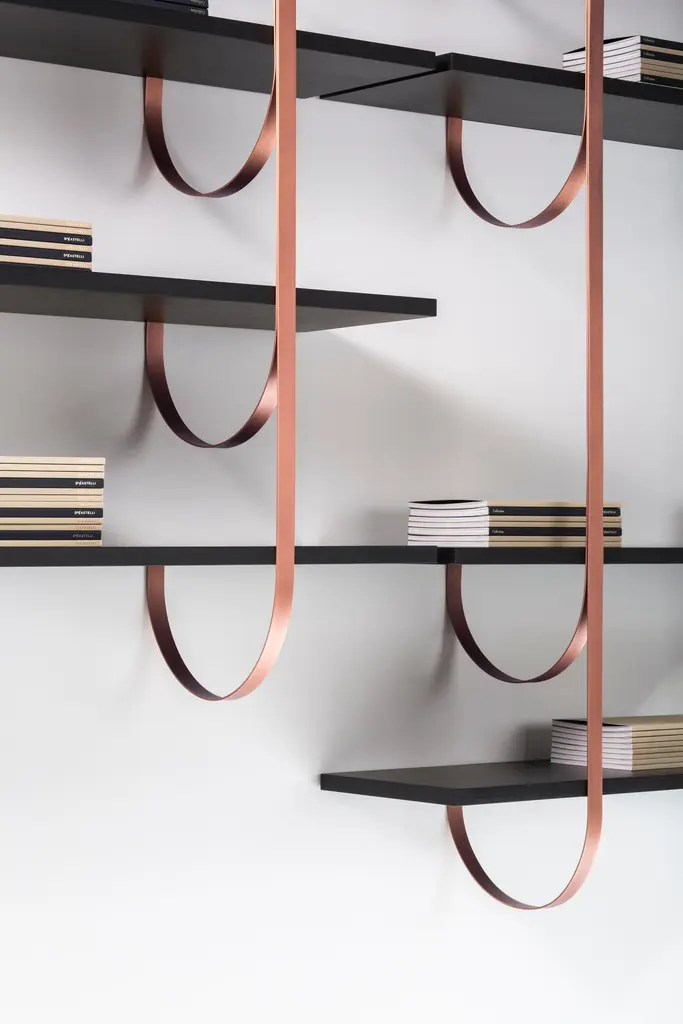Decastelli Talea 185 Bookshelf In Copper With 4 Wooden Shelves By Lucidipevere