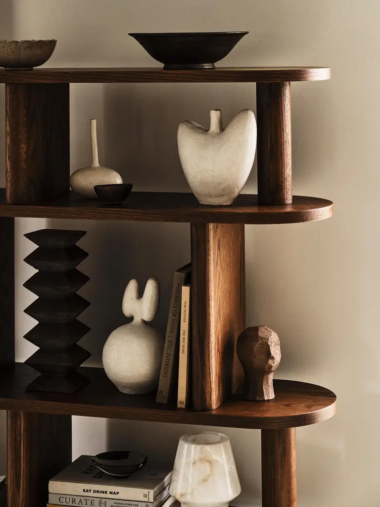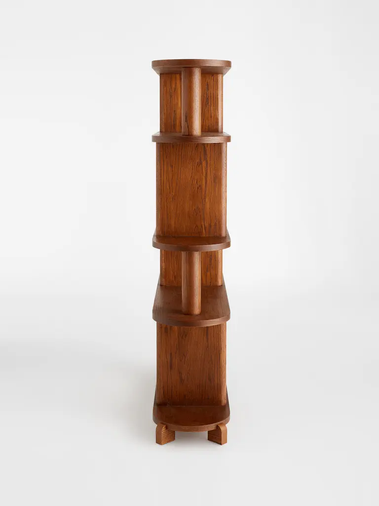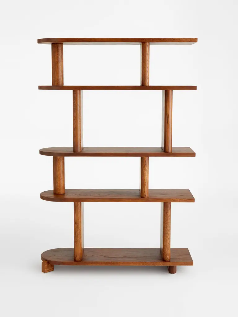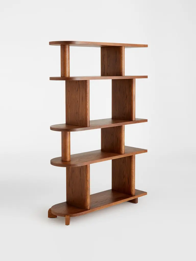 This shelving unit has been crafted from solid oak and can stand alone or be paired with another unit to create a room partition. Inspired by 180 House, the Elwood shelving unit features varying shelf heights to allow for both large and small-scale items, with smooth, rounded edges.
