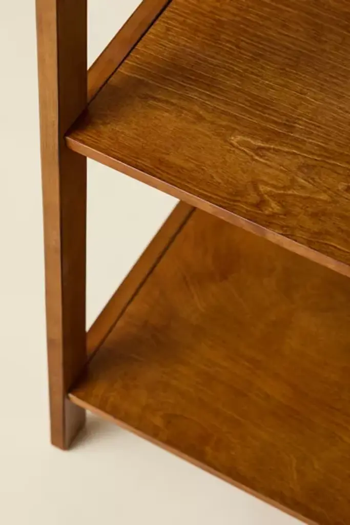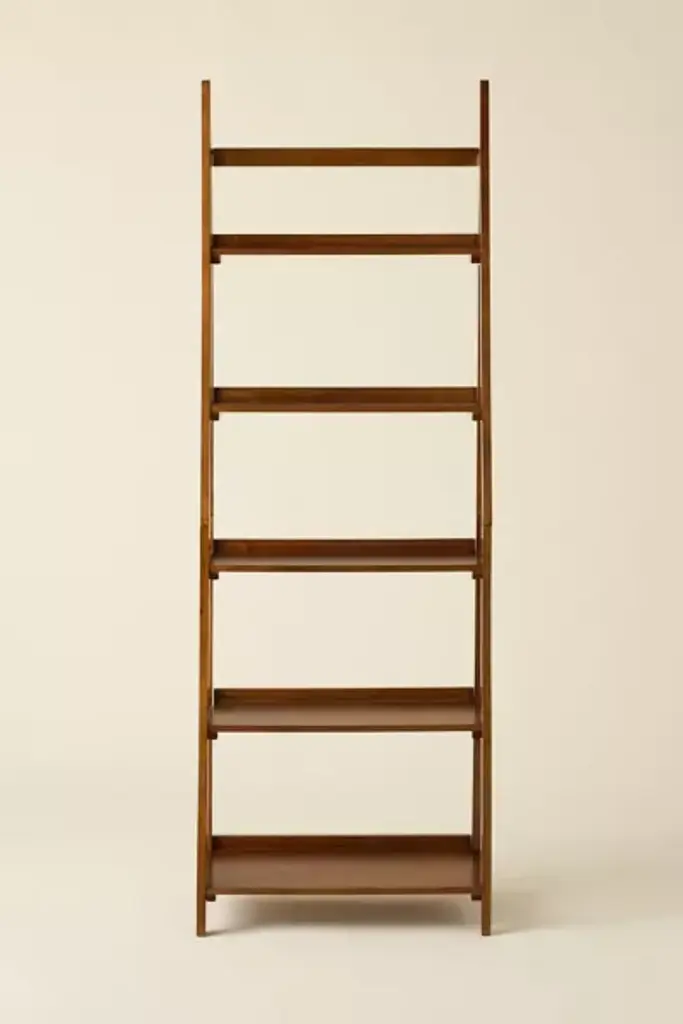 A timeless bookshelf to organize your space, this wood storage shelf features five fixed shelves, each in a unique size that allows you to make so many versatile displays from your books and trinkets. **Features** \- Erin 5-Tier Bookshelf \- Five fixed shelves that increase in size from top to bottom \- Versatile - use this storage shelf to display your books, trinkets and plants \- Assembly required **Content + Care** \- Assembly required - instructions and hardware are included \- Rubberwood, MDF \- Wipe clean \- Imported **Size** \- Dimensions: 24.75"l x 16"w x 72"h \- Leg height/Clearance: 3.4", fixed \- Shelf 1 dimensions: 23"l x 4.72"w x 12.75"h \- Shelf 2 dimensions: 23"l x 6.9"w \- Shelf 3 dimensions: 23"l x 9.5"w \- Shelf 4 dimensions: 23"l x 11.75"w \- Shelf 5 dimensions: 23"l x 14.1"w \- Weight limit: 55 lbs \- Weight: 32.9 lbs \- Shipping package dimensions: 41.7"l x 22.8"w x 10.04"h \- Shipping package weight: 42.8 lbs