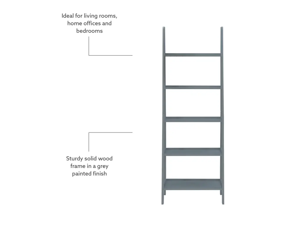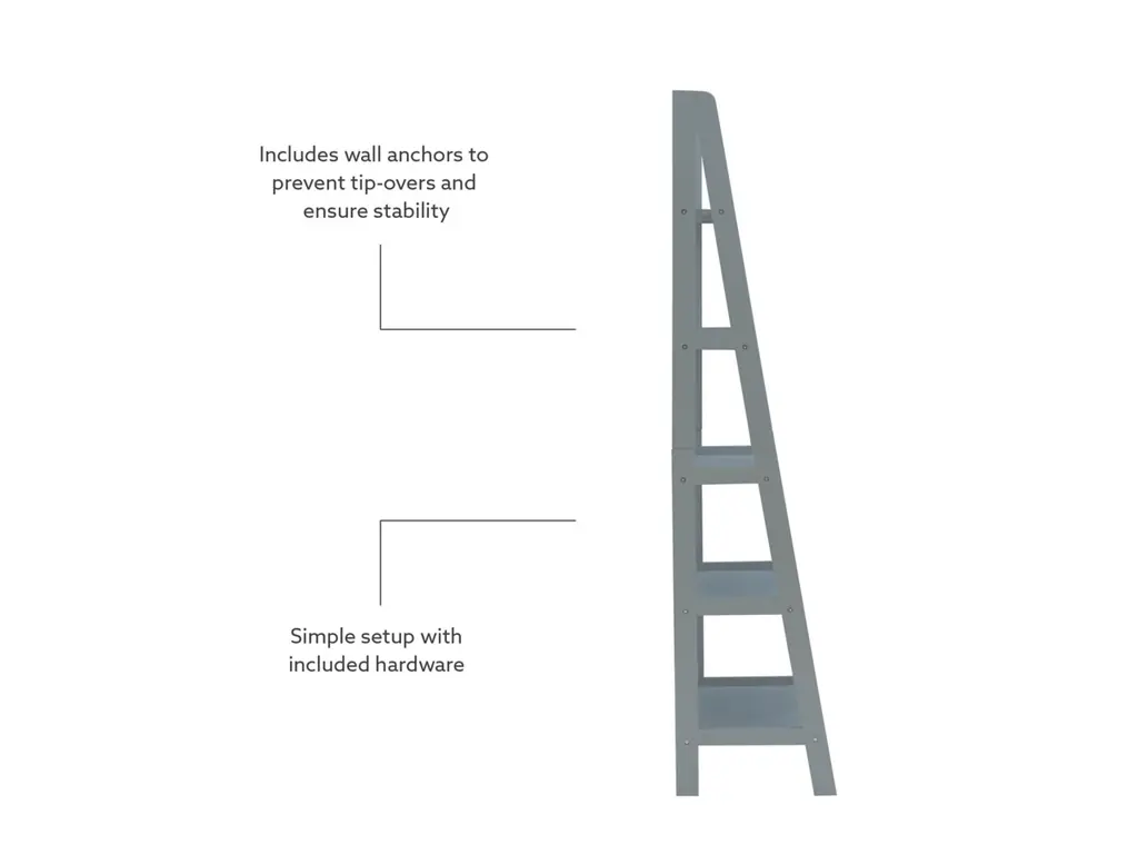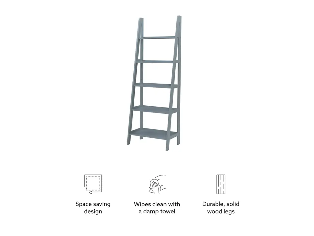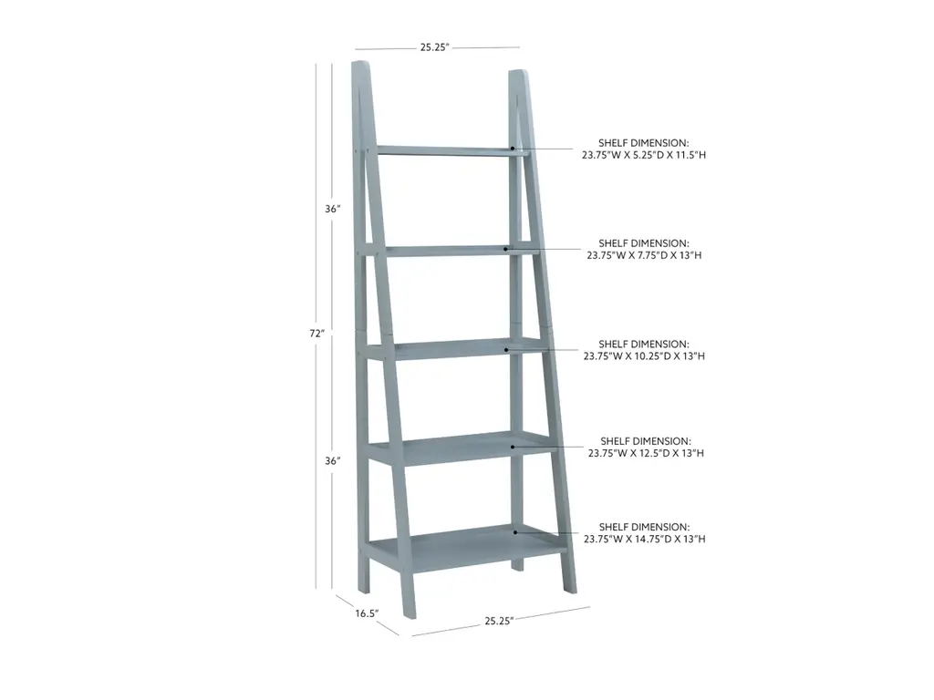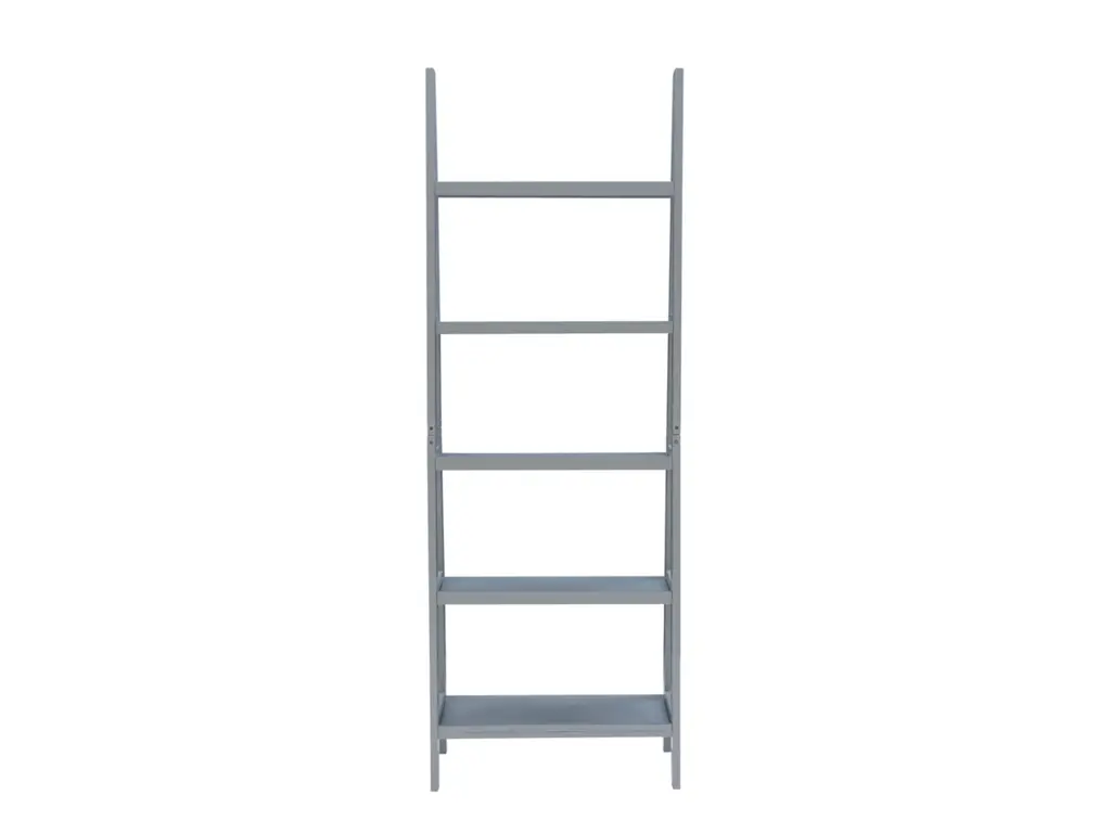 Designed in a clean, open silhouette, enabling you to show off not only your top favorite titles but also decor, objects and knickknacks. This gray painted bookcase features five shelves in decreasing depth and is designed to fit easily into taller, narrower spaces. Use in a home office, living room, bathroom or entryway to provide ample open storage.