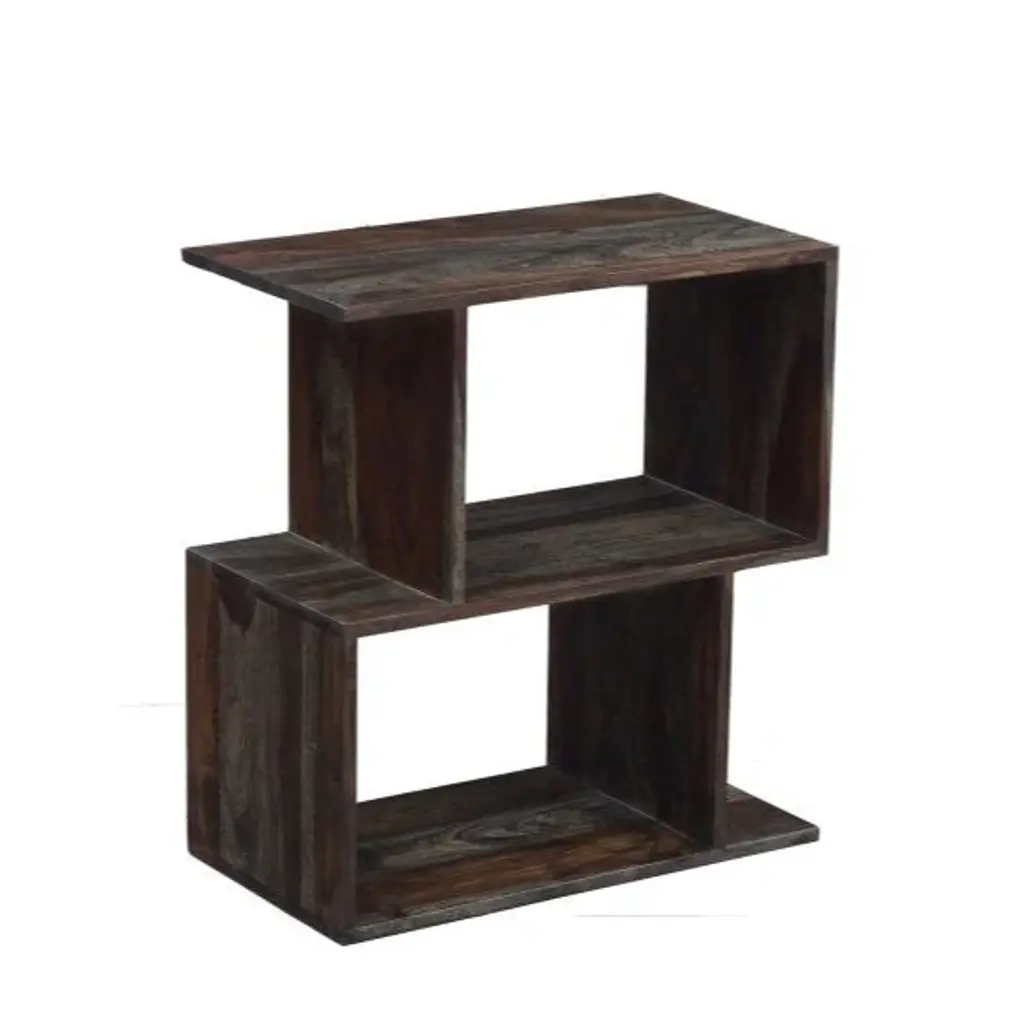 The Fall River 2 Tier Bookcase has a sleek black walnut finish and sophisticated clean lines. Crafted from sturdy Sheesham wood, this collection embodies contemporary elegance and is ideal for modern homes.