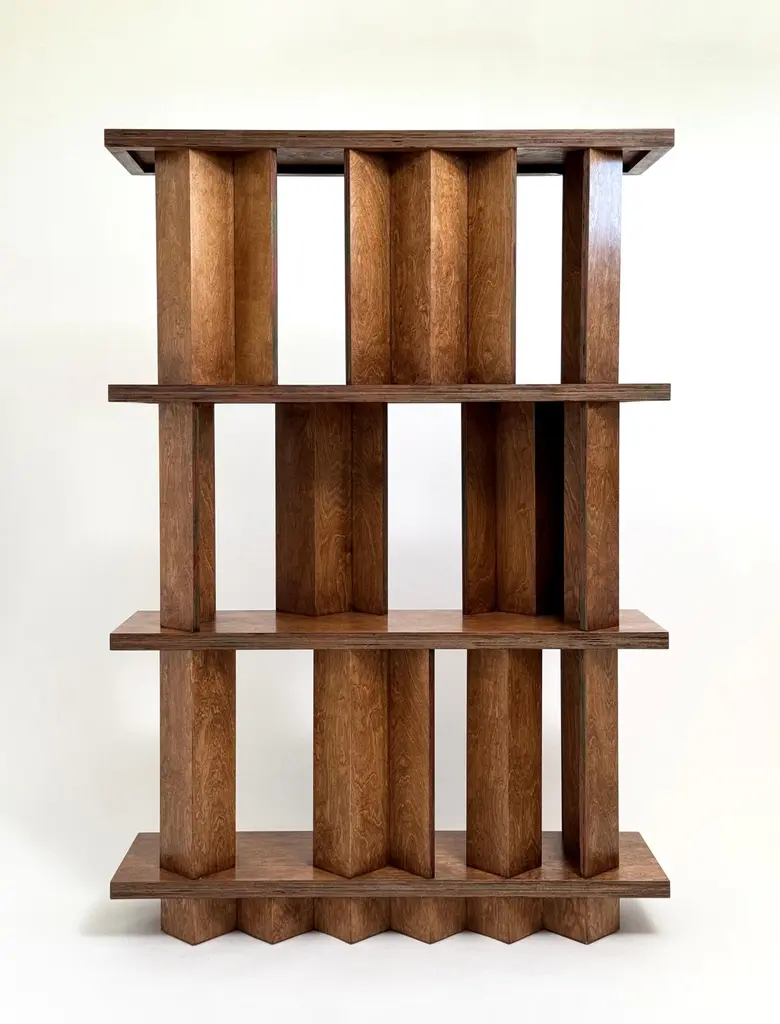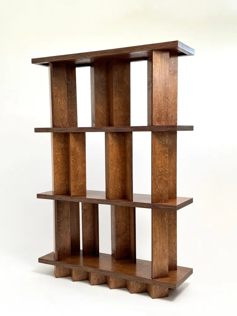 Foundation bookshelf by Goons Dimensions: W 74 x D 30 x H 150 cmMaterials: Birch plywood.Oak finish.Dimensions can be adjusted +/- 10 cmGoons is located in Paris, France. All of their designs are made out of wood.