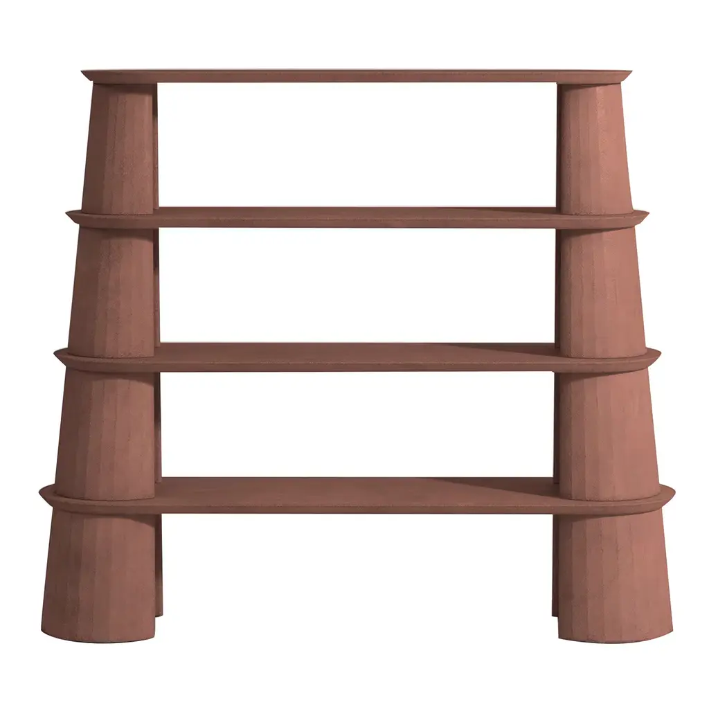 Part of a series named after the Italian word for "trunk", this modular bookshelf is marked by two column or trunk-shaped lateral elements firmly supporting four shelves. Entirely fashioned of ultra-high-performance sandblasted and hand-treated concrete boasting a cream color, the piece combines a light and elegant flair with the hard-edge quality of concrete. Eight other colors are available upon request to the Concierge.