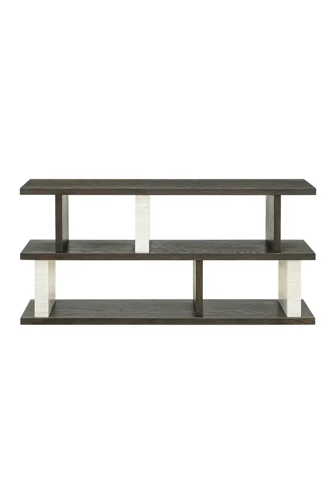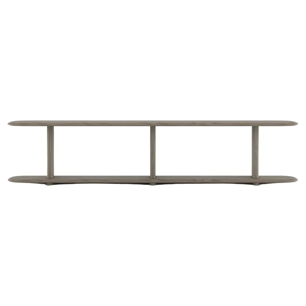 An exquisite combination of hard, ultra-high-performance concrete and lightweight essential lines, this modular bookshelf flaunts a timeless design enhanced with a striking interplay of lights and shadows, marked by a dark ink color. Supported with four columns of different sizes, this piece features three horizontal shelves that can be arranged at will. Available in eight different colors, it is hand-treated with water repellent products.