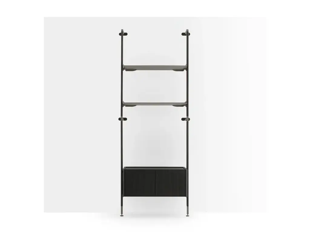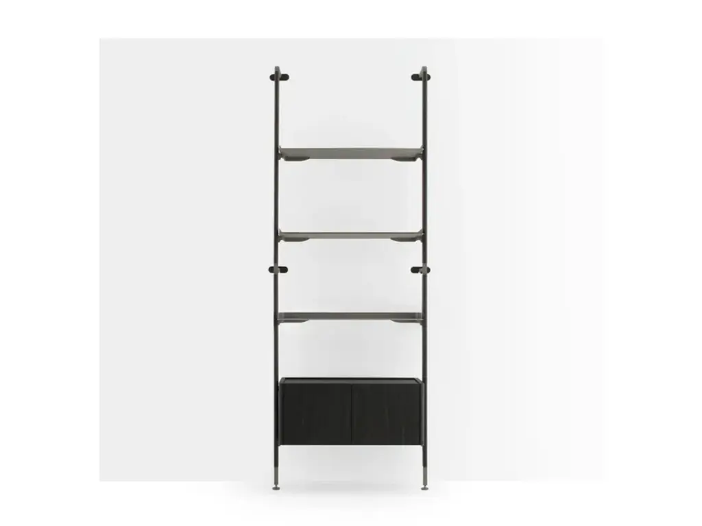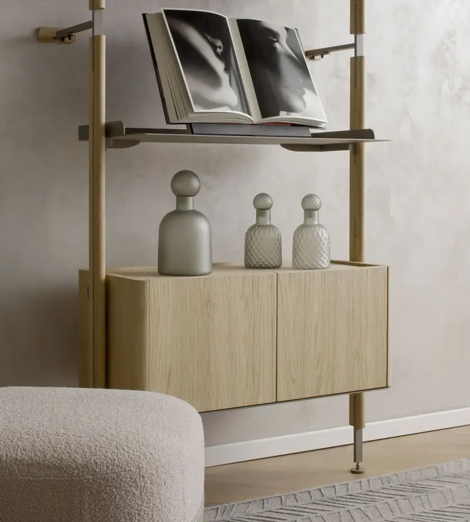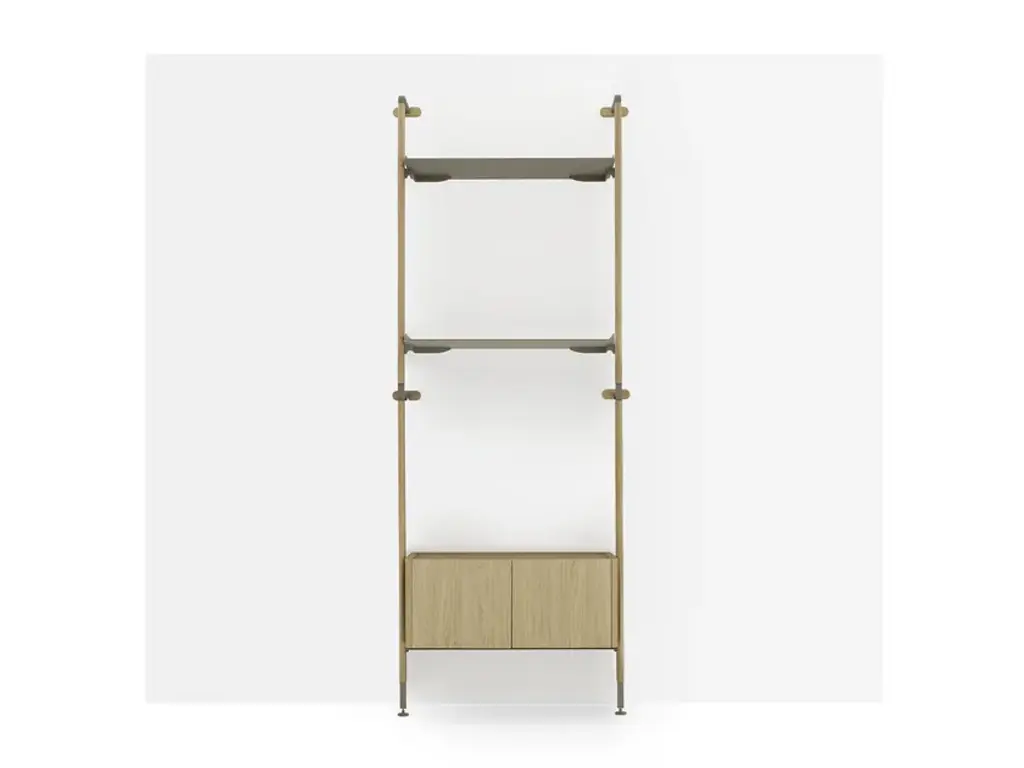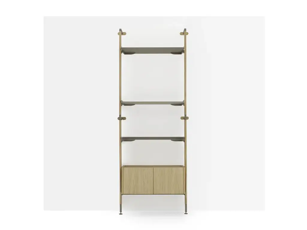 Wall-mounted bookcase module with solid wood uprights and Champagne metal shelves. The bookcase is modular and made up of individual modules, each consisting of two vertical uprights and a Champagne metal fixing system with a solid wood cover. The shelves are customizable (minimum 1 – maximum 4) and can be paired with an optional curved storage box in veneered MDF at the bottom. Available in different finishes.HM.GAL.M1.RL.MC: Solid oak Laguna uprights, 4 Champagne metal shelves.HM.GAL.M1.RN.MC: Solid Natural Oak uprights, 4 Champagne metal shelves.HM.GAL.M2.RL.MC: Solid oak Laguna uprights, 3 Champagne metal shelves, 1 curved storage box in veneered MDF oak Laguna.HM.GAL.M2.RN.MC: Solid Natural Oak uprights, 3 Champagne metal shelves, 1 curved storage box in veneered MDF Natural Oak.HM.GAL.M3.RL.MC: Solid oak Laguna uprights, 2 Champagne metal shelves, 1 curved storage box in veneered MDF oak Laguna.HM.GAL.M3.RN.MC: Solid Natural Oak uprights, 2 Champagne metal shelves, 1 curved storage box in veneered MDF Natural Oak.Haute Couture gets its inspiration from high fashion, where stitching, workmanship and materials are at the core of the design. Dressers are outfitted using hand-crafted leather, the furniture is embellished using precious marble, and the wood is selected on the basis of its grain. The synthesis of this collection is a modern line with a contemporary slant that is embodied in a luxury that is not overly flashy but grounded in sophistication. Timeless products made with high quality materials and handcrafted in Italy.