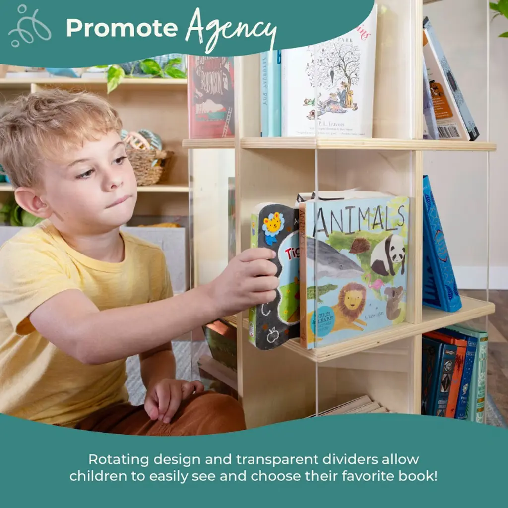 Guidecraft Edq Kids Rotating Bookshelf - Natural: 3-tier 360 Wooden Board Book Display W Acrylic Shelves | Classroom, Playroom & Bedroom Storage