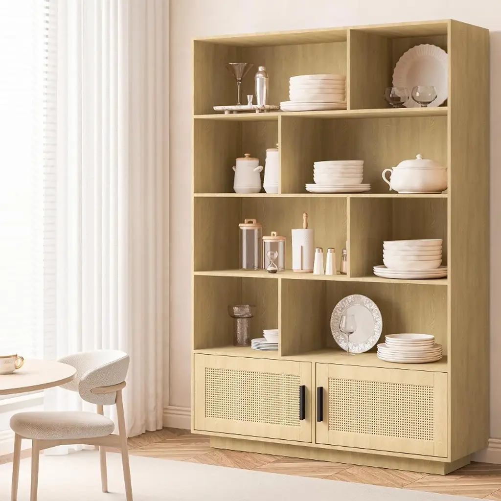 This tall wooden bookshelf combines safety, durability, and unique bohemian style with its woven rattan door design. Featuring a sturdy wooden base and anti-tipping device, it ensures stability on uneven floors and protects your home’s safety, even with children or pets around. With five tiers—four open shelves and one enclosed compartment—it offers ample and accessible storage space. Crafted from high-quality MDF with reinforced rattan trim, each shelf supports up to 44 pounds. Easy to assemble with detailed instructions, this bookshelf is a stylish and practical addition to any room.