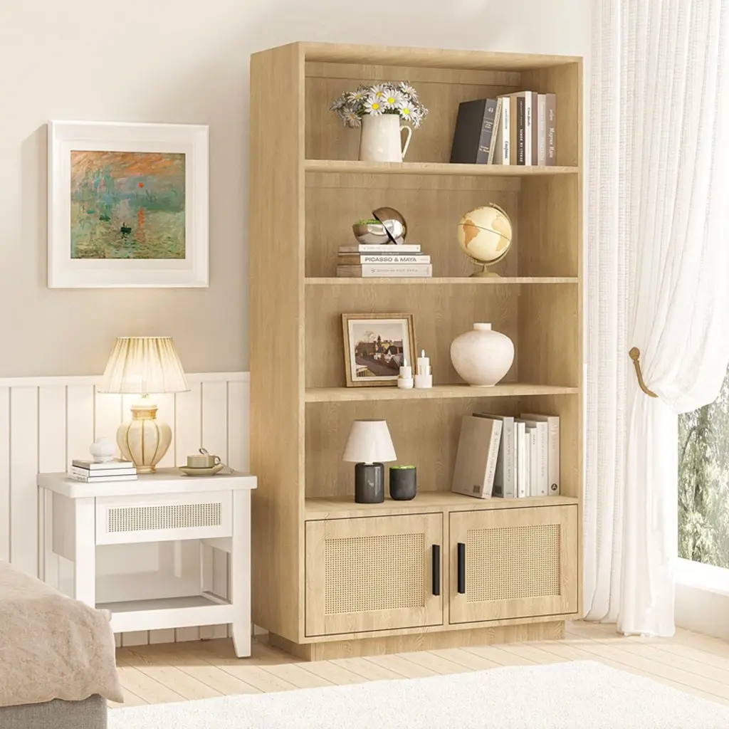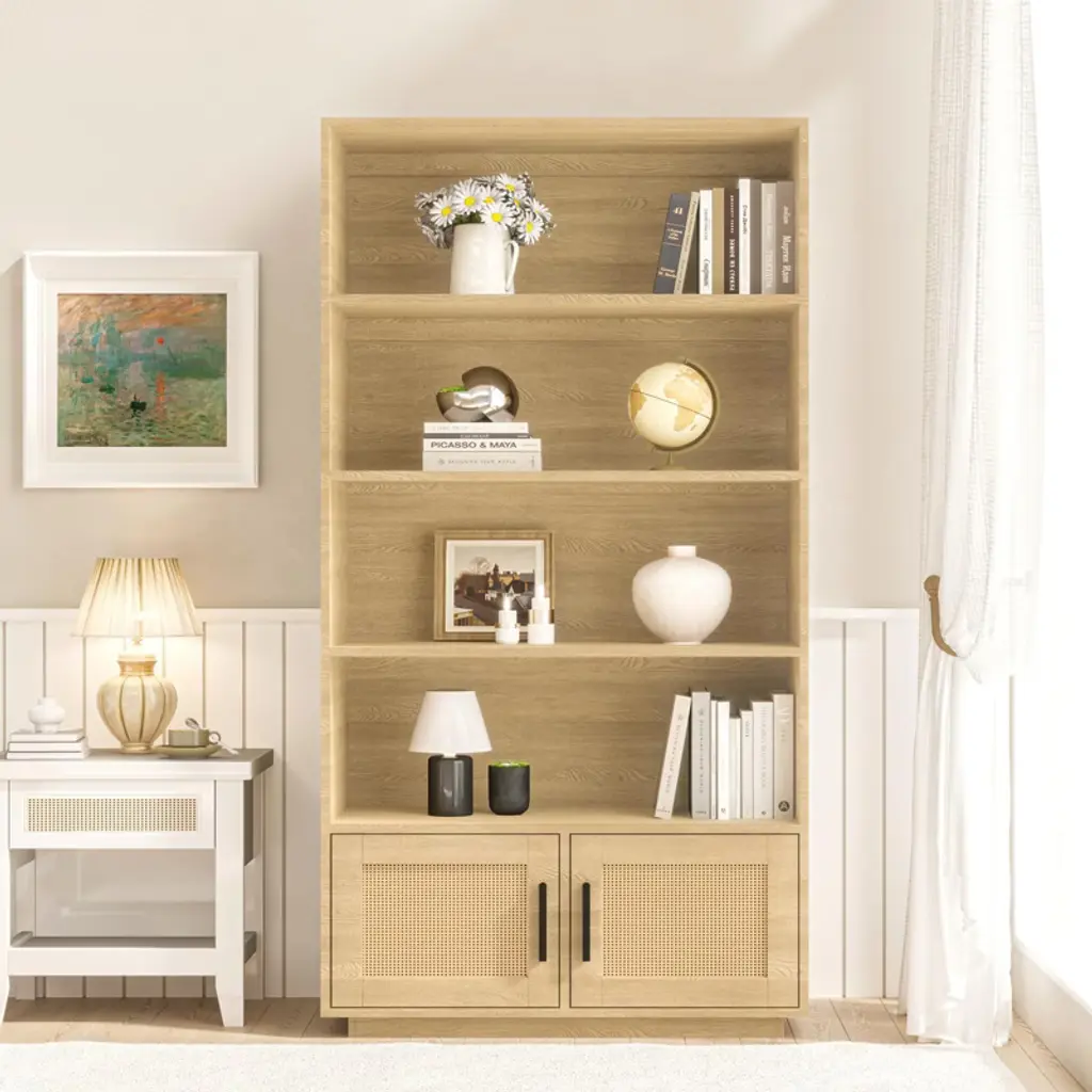 This modular farmhouse-style bookcase offers versatile and customizable storage to adapt to your changing needs. Featuring a classic barn-inspired design with six open tiers, it provides ample space to organize books, décor, and everyday items while adding rustic charm and modern functionality to any room. Built from thick wood boards with reinforced supports and equipped with anti-tip hardware, this sturdy bookshelf ensures safety and durability, making it ideal for living rooms, offices, libraries, and more.