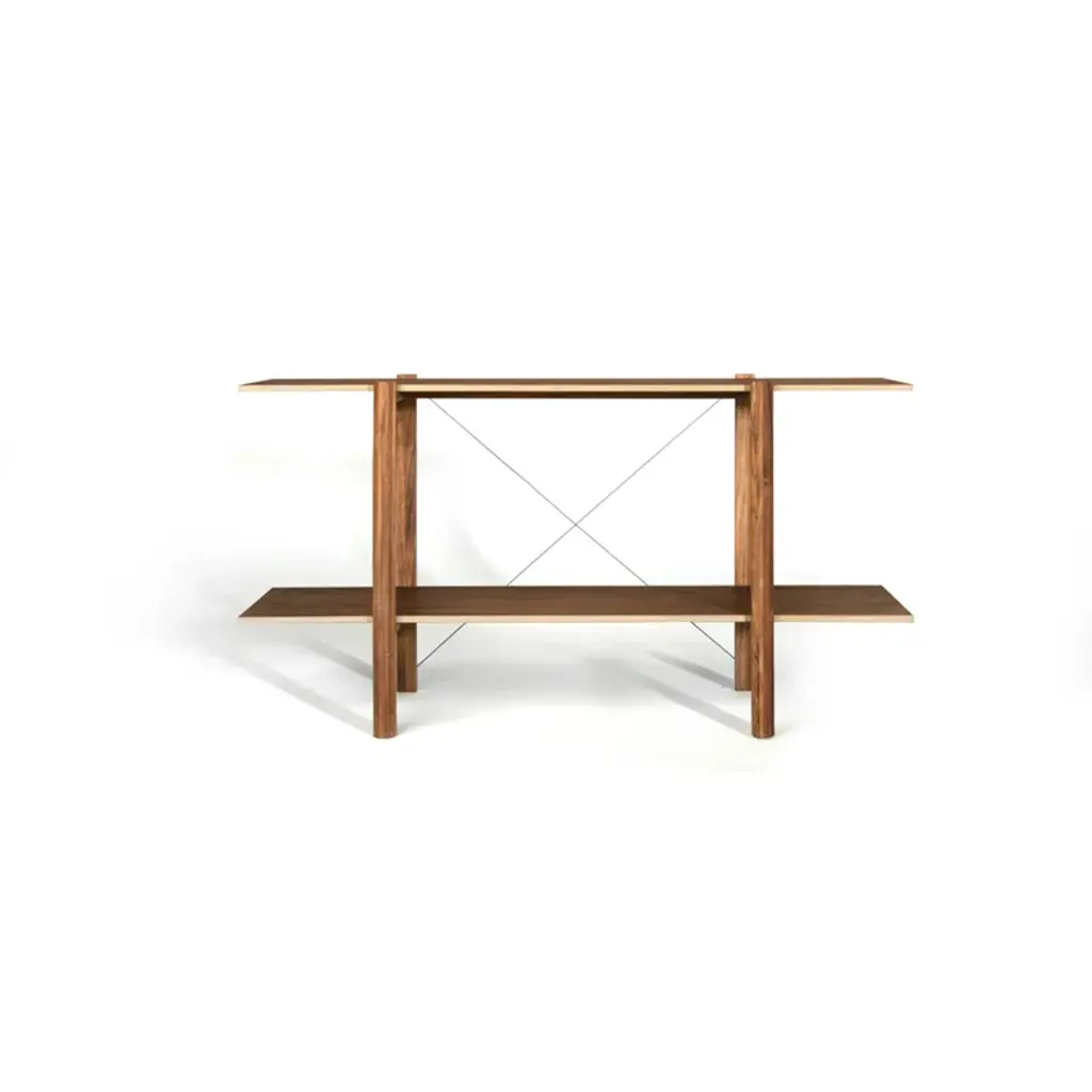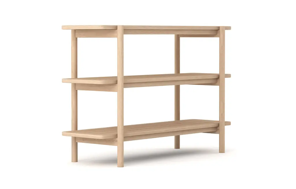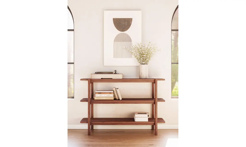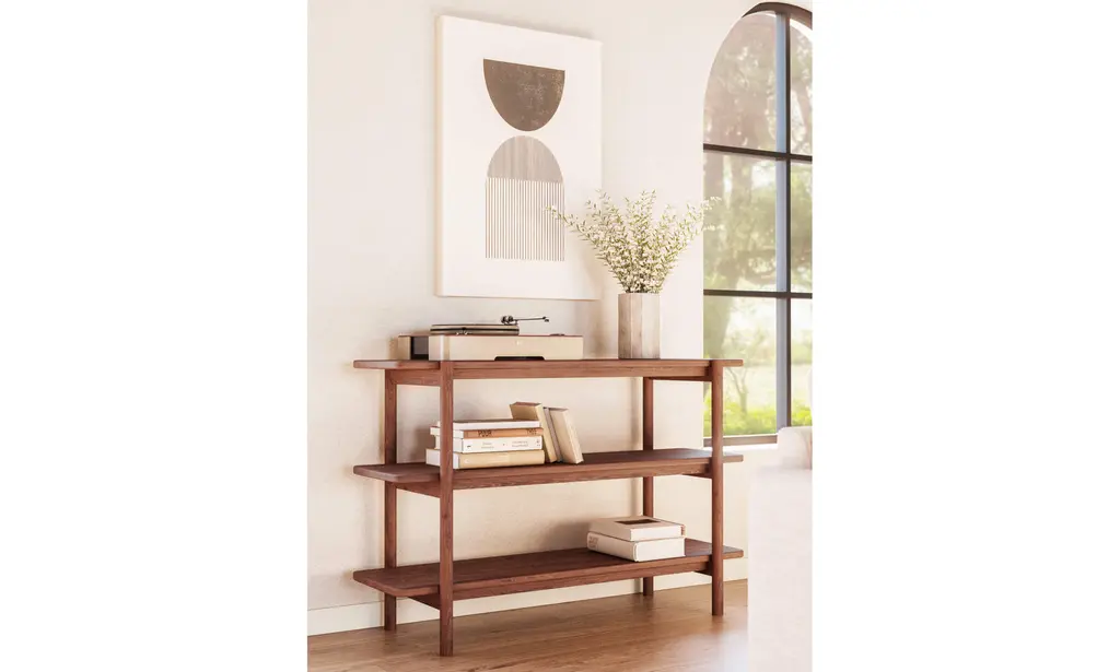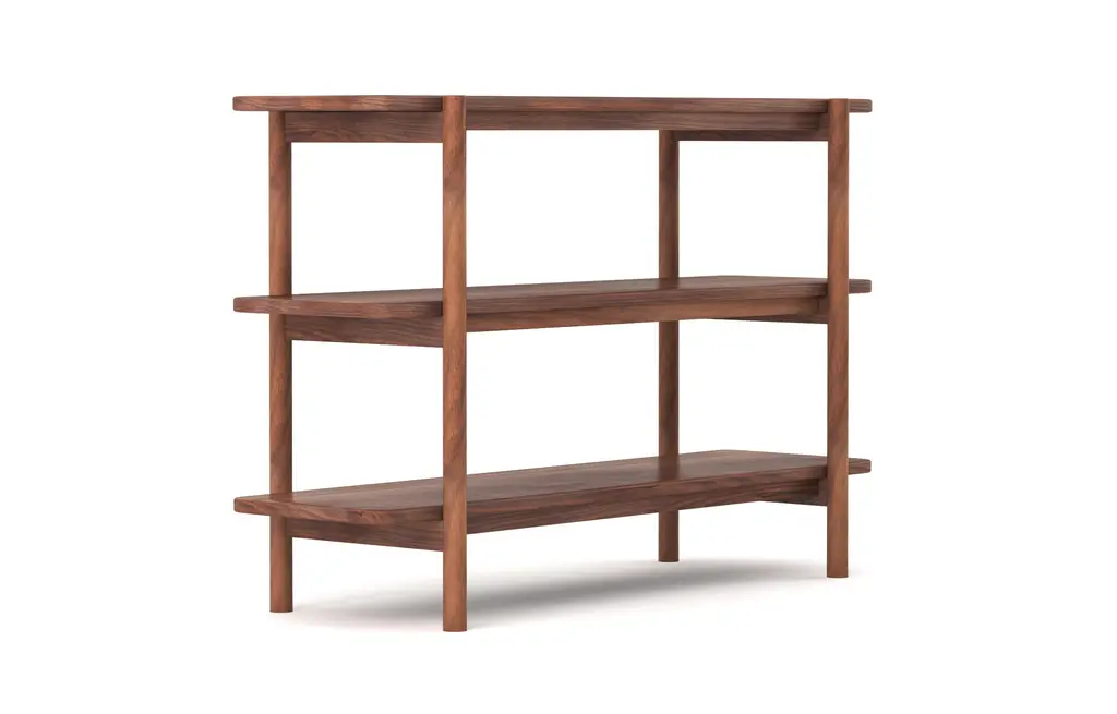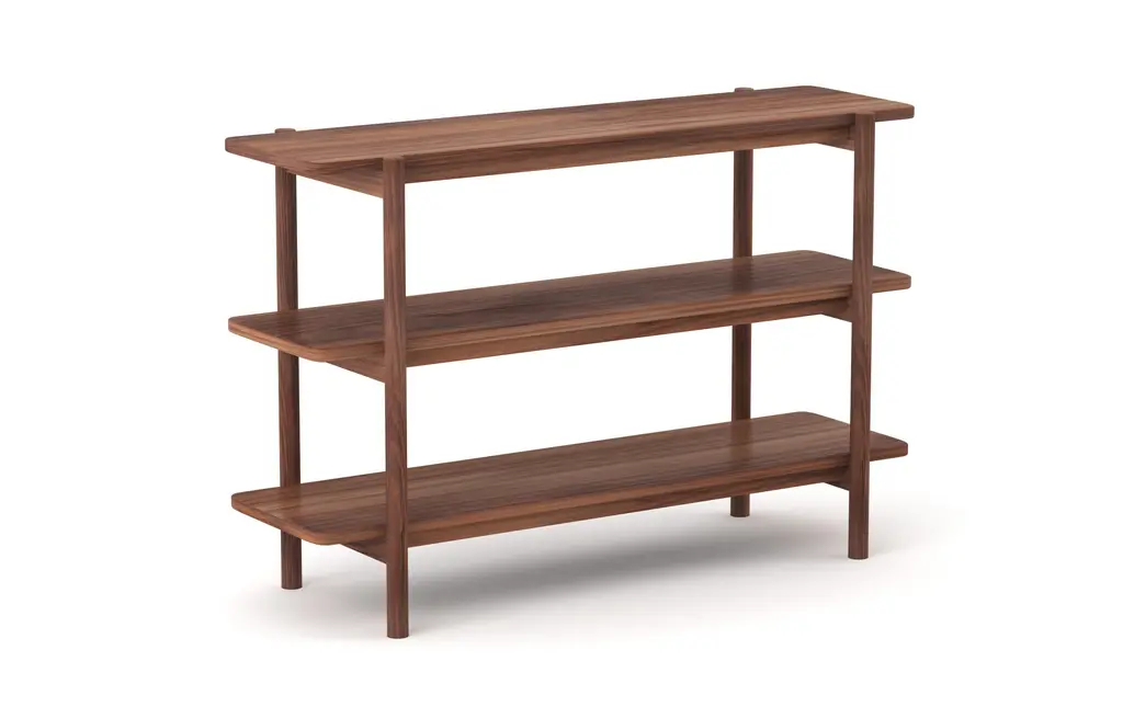 Iris Shelf's open design lets your favorite possessions shine. Its narrow profile fits neatly into any nook or against a wall—you pick! Lots of styling potential here: vases and plants up top, books and the rest down below?Crafted in your choice of beautiful, 100% solid hard White Maple or American Walnut.
