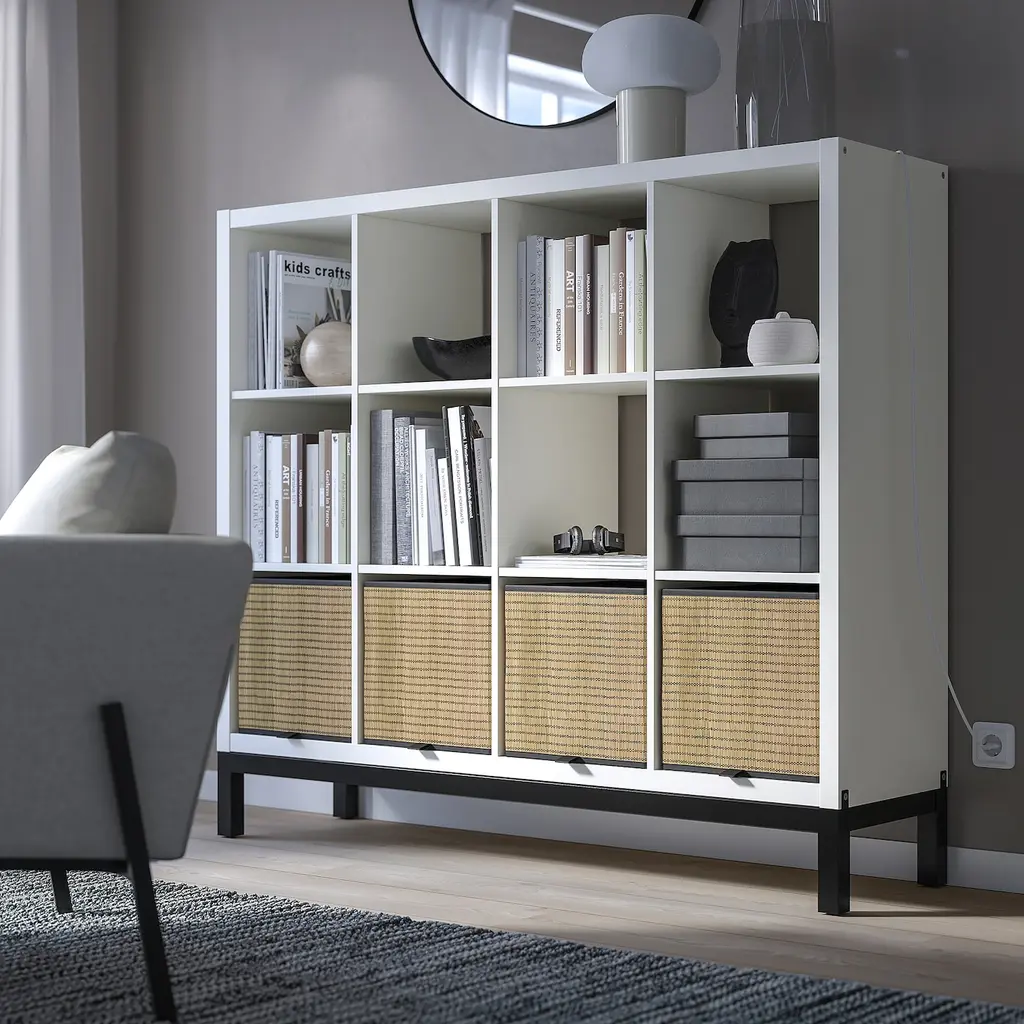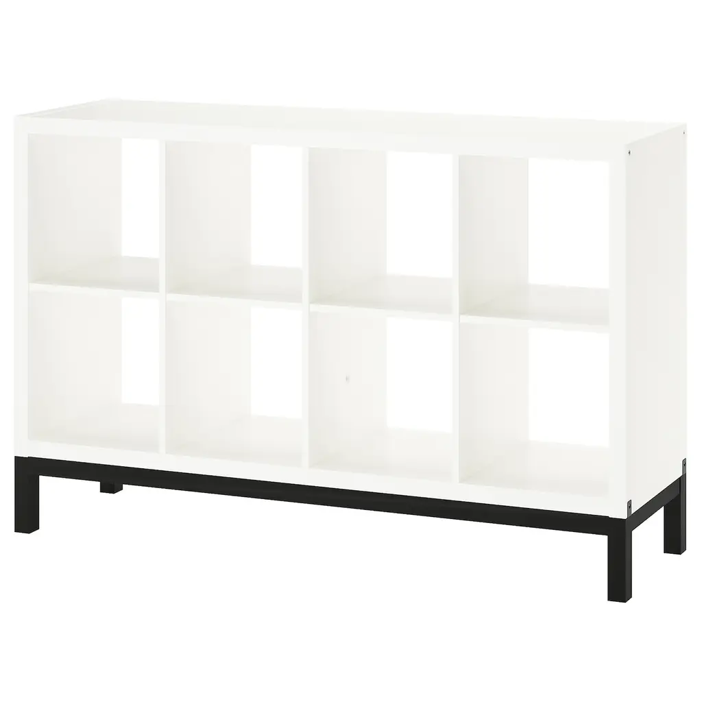 KALLAX Shelving unit with underframe - white/black 57 7/8x50 3/4 ". The underframe gives the shelving unit an airy and elegant look while making it easier to vacuum under it. The simple design with clean lines makes KALLAX flexible and easy to use at home.