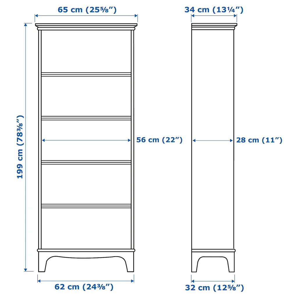 LOMMARP Bookcase - black 25 5/8x78 3/8 ". The design makes this piece of furniture easy to place, easy to use for various needs, and easy to match with other furnishings. 3 movable shelves make it easy to adapt the space to your storage needs. 1 stationary shelf for high stability.