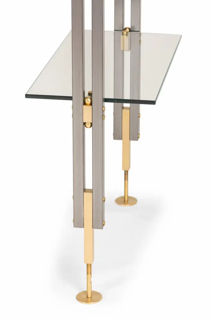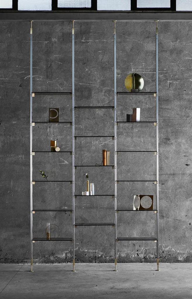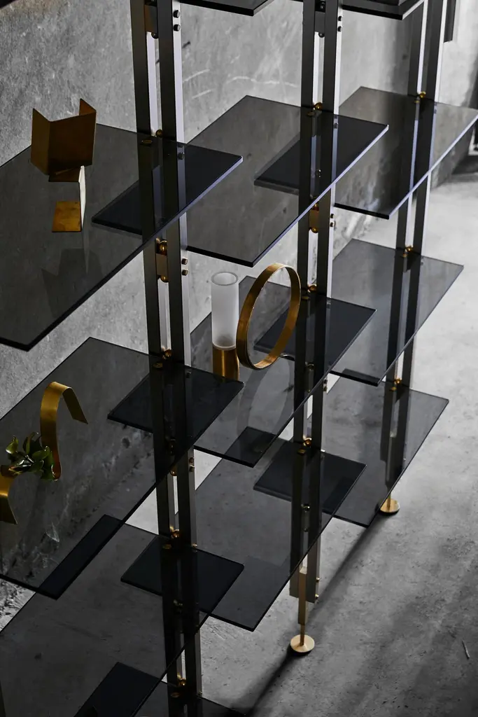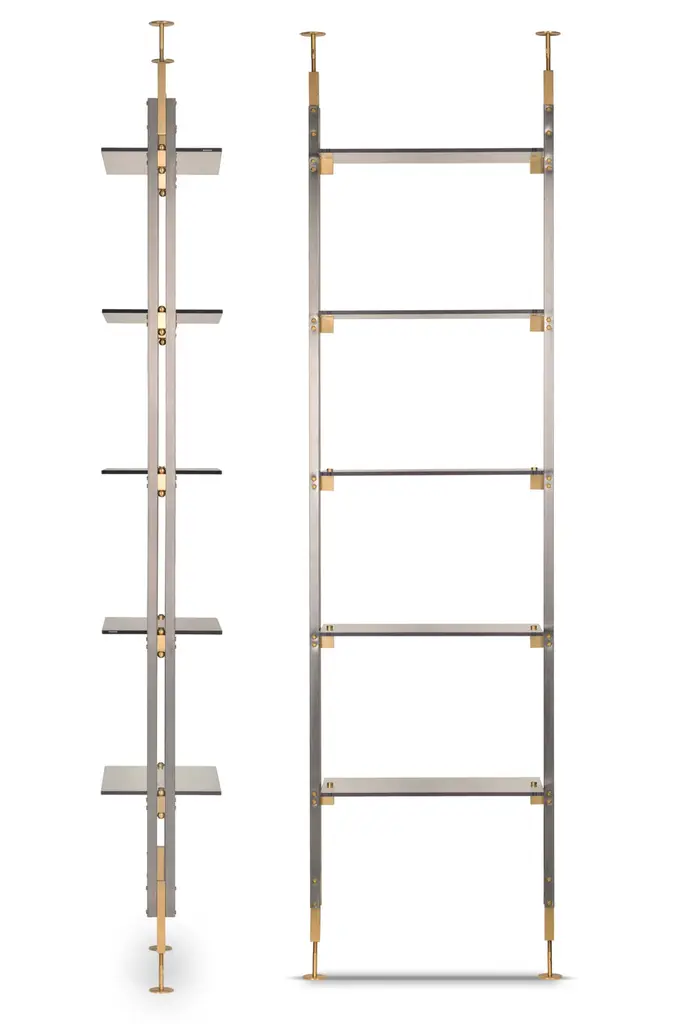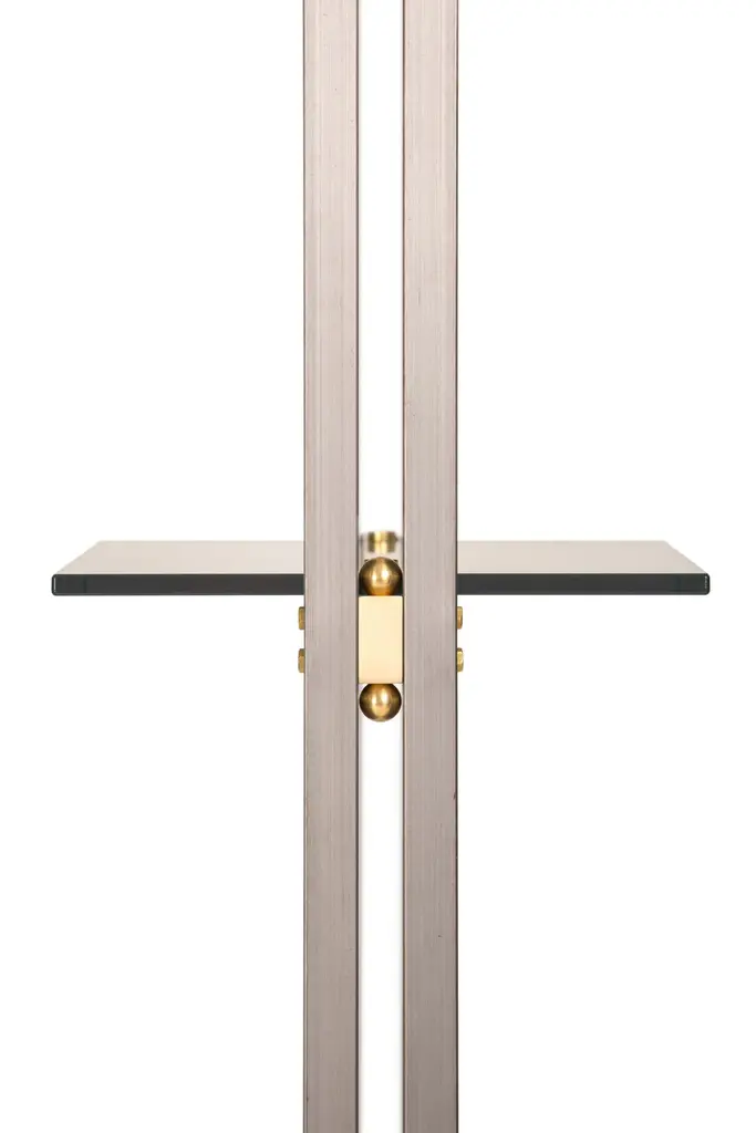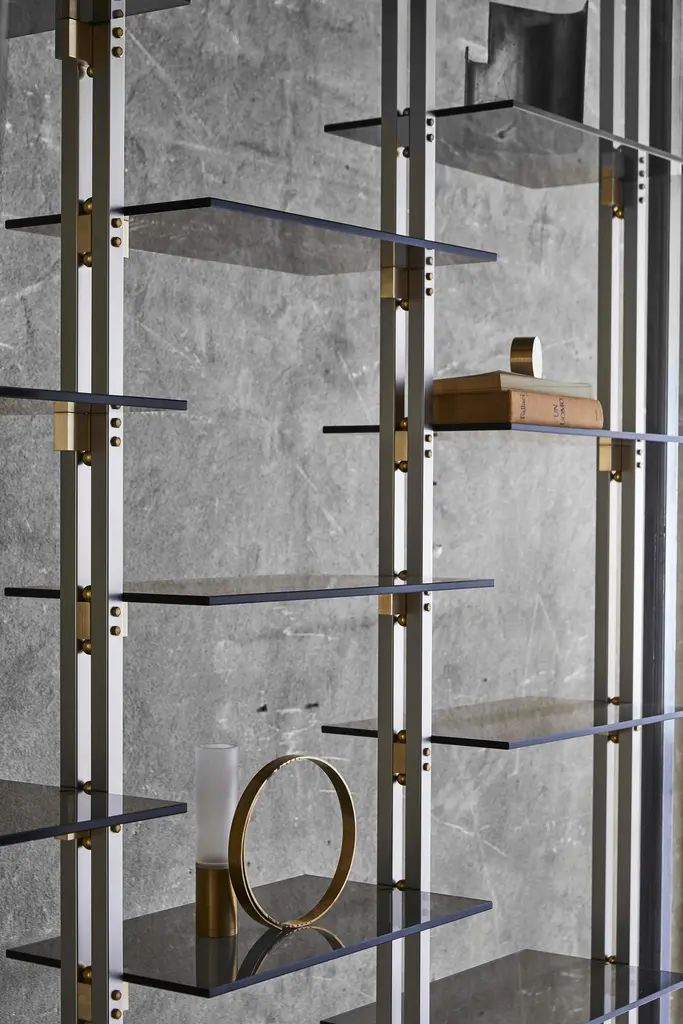 Marianne bookshelf by MingardoDimensions: D62 x W30 x H240 cm Materials: Matte nickel structure, tempered glass shelves. Natural brass details with spheres.Weight: 60 kgAlso Available in different finishes and dimensions.A thin, elegant, multipurpose bookshelf. A project born not only to store but also to enrich an environment with sophistication. A reinterpretation of the classic book shelves of the 60s, with a pinch of Art Dèco. The product brilliantly summarises the style of its designer, always looking for elegant and timeless shapes, minimal and feminine. It is a modular object, therefore it can be customised in height and shelves quantity. Versatile, it can easily fit inside both domestic and contract environments.Mingardo Ilario founded Mingardo Blacksmith Workshop in 1970, after over twenty years’ experience in the metal processing field.The production was initially focused on simple blacksmith works for the construction industry. Over the time, it has become more refined, enabling the company to collaborate with internationally renowned companies and architects: from the first collaborations with architect Carlo Scarpa to the more recent commissions for Museo del Novecento in Milan, Parco della Musica in Florence, and Teatro Petruzzelli in Bari.Over the years, the Workshop has achieved great results, with the production of unique metal products, all hand-wrought by a highly skilled team of specialized artisans. Nowadays, it is highly regarded in the local artisan field for its high-end refined finishing touches and details, and for its know-how.