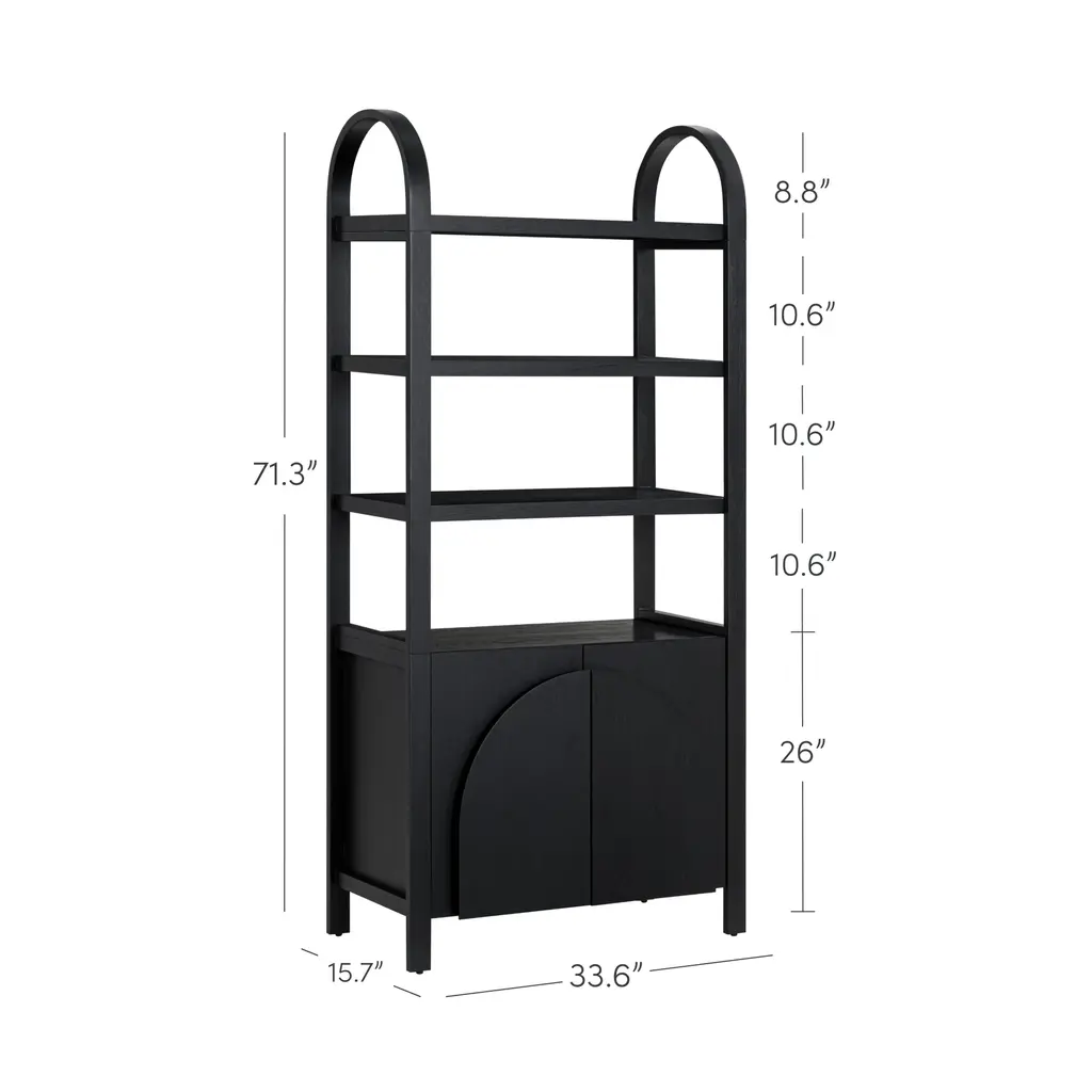 Mid-Century Arched Bookshelves With Doors Black (Set Of 3)