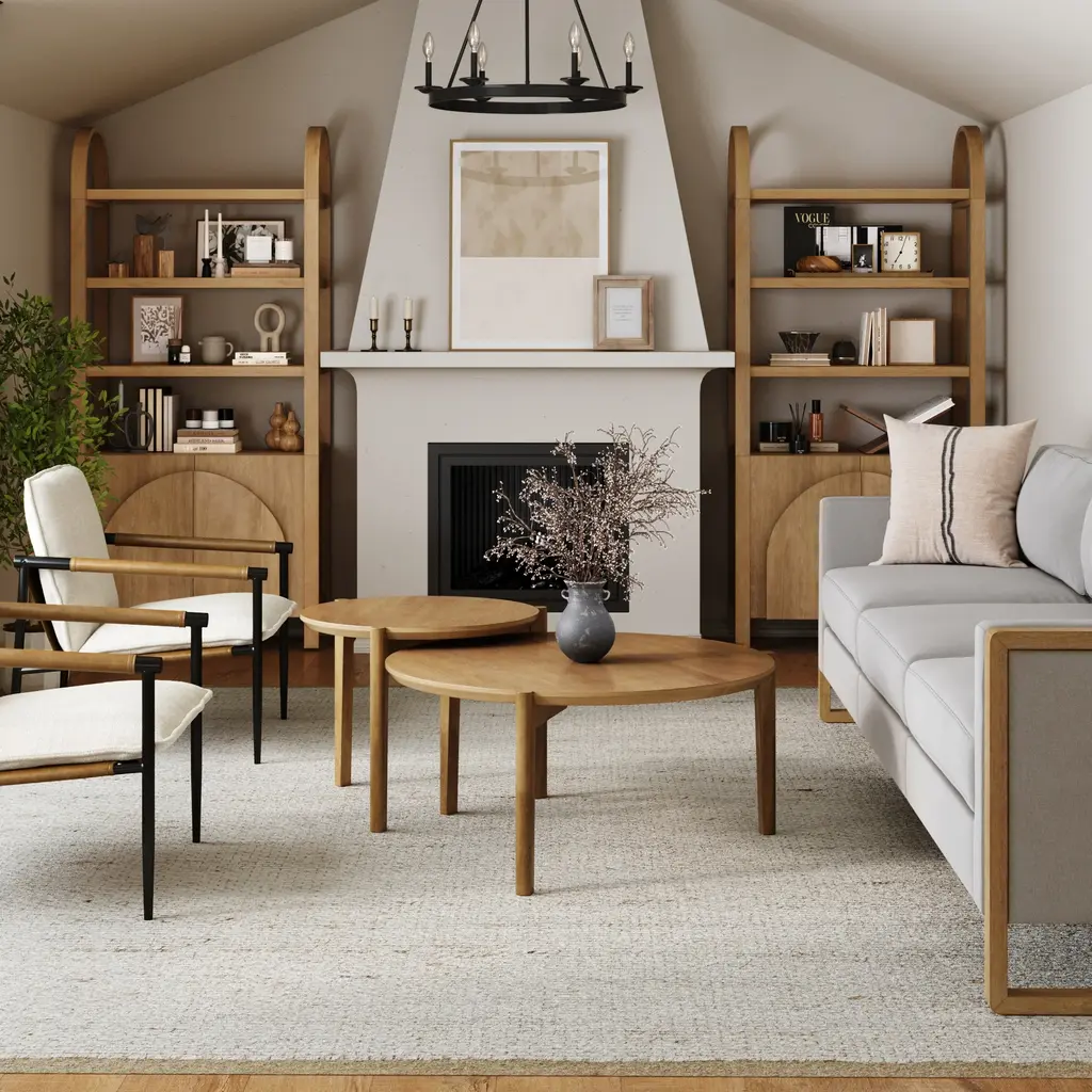 Mid-Century Arched Bookshelves With Doors Light Brown (Set Of 2)