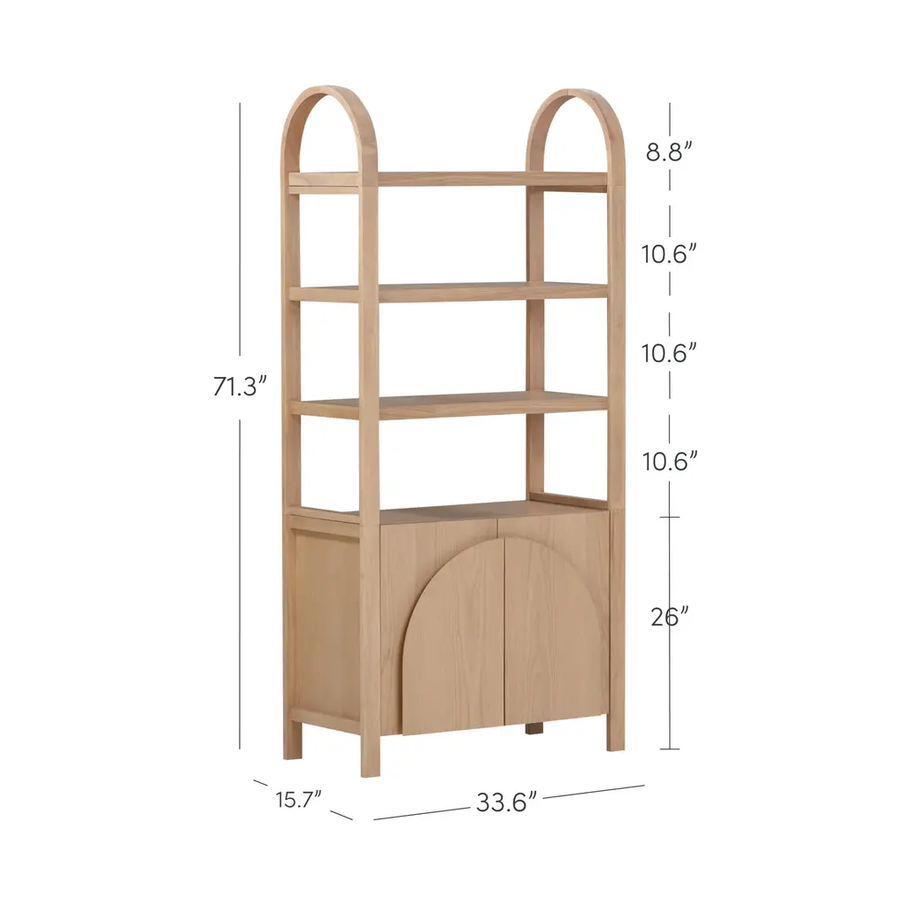 Mid-Century Arched Door Bookshelf With Doors Raw Oak