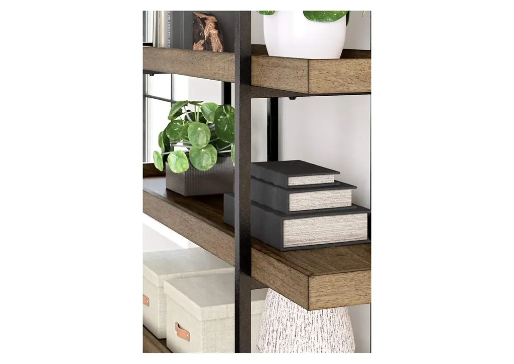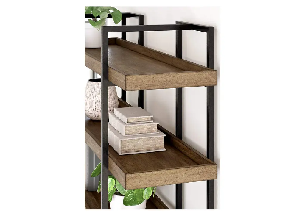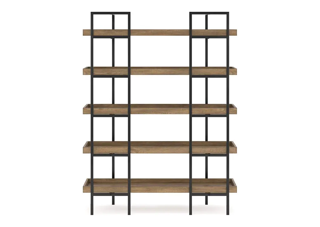 Sleek in its simplicity, the Montia bookcase encourages you to work or study in style. Its mixed-material design brings a trendy, urban chic feel to your work area. Five gallery shelves serve as the perfect place to store and display your favorite books or accessories. Weight 132.000 lbs. (59.4kgs.)