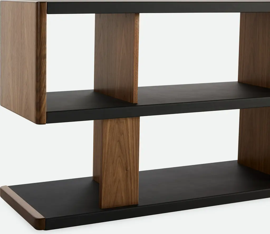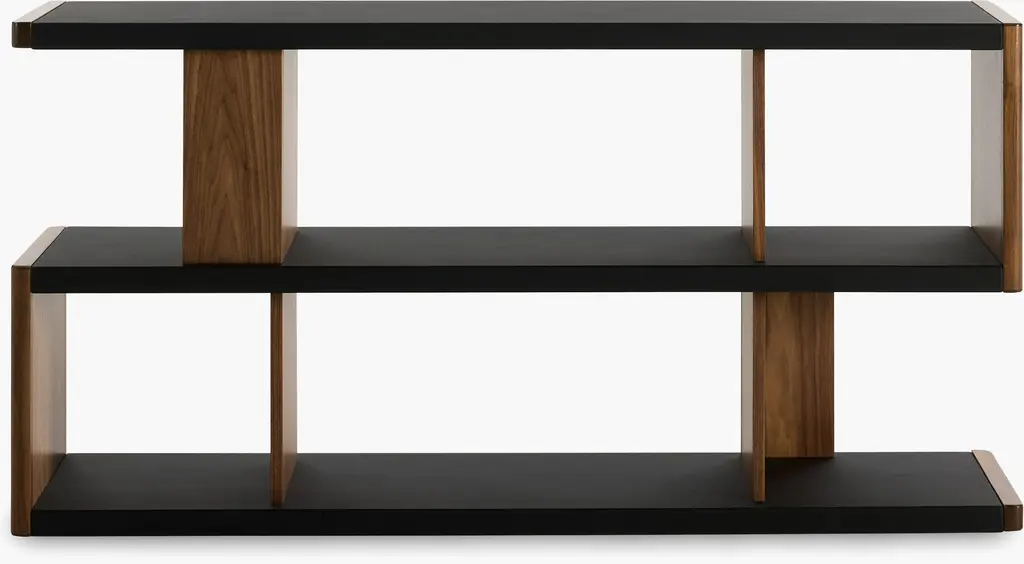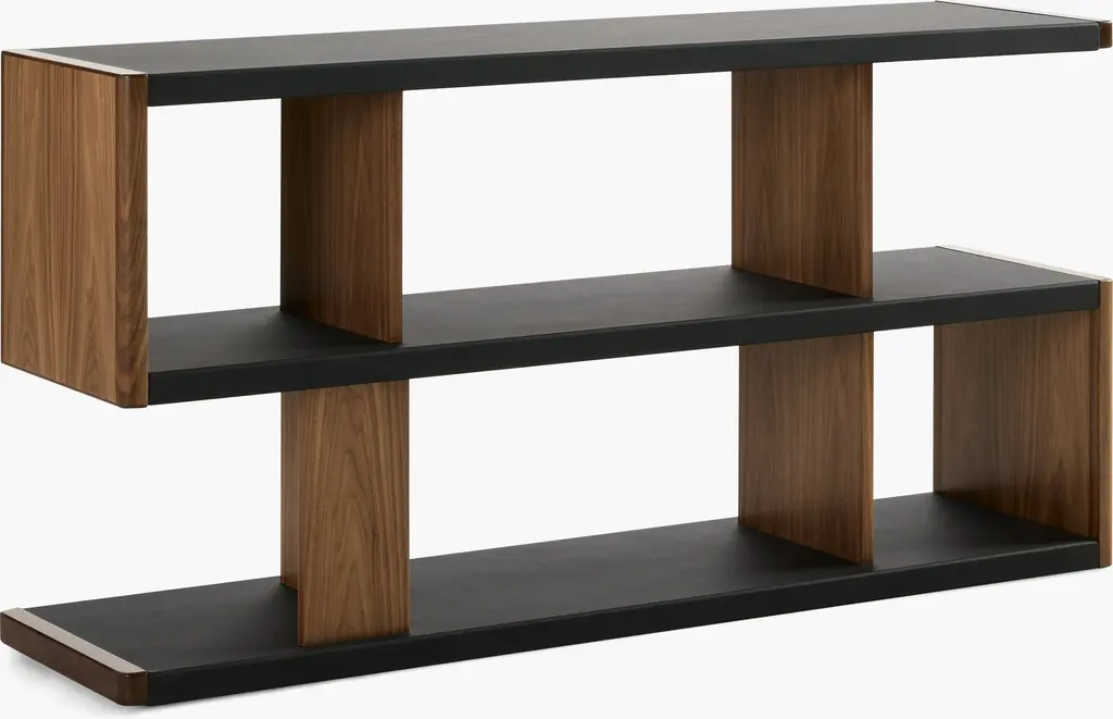 With an ethos they call Craftsman Modern, Connecticut-based BassamFellows designs furniture defined by honest materials, clean lines, and meticulous construction - all imbued with tactile richness. New Canaan Collection (2025) embodies this approach. Rooted in modernist principles, the Low Bookshelf combines precision engineering and old-world craftsmanship with its sturdy wood frame wrapped in a range of premium leathers. Staggered compartments of varying sizes accommodate diverse storage needs while creating visual intrigue with their asymmetrical composition. Crafted by Geiger in the USA, using globally sourced materials.