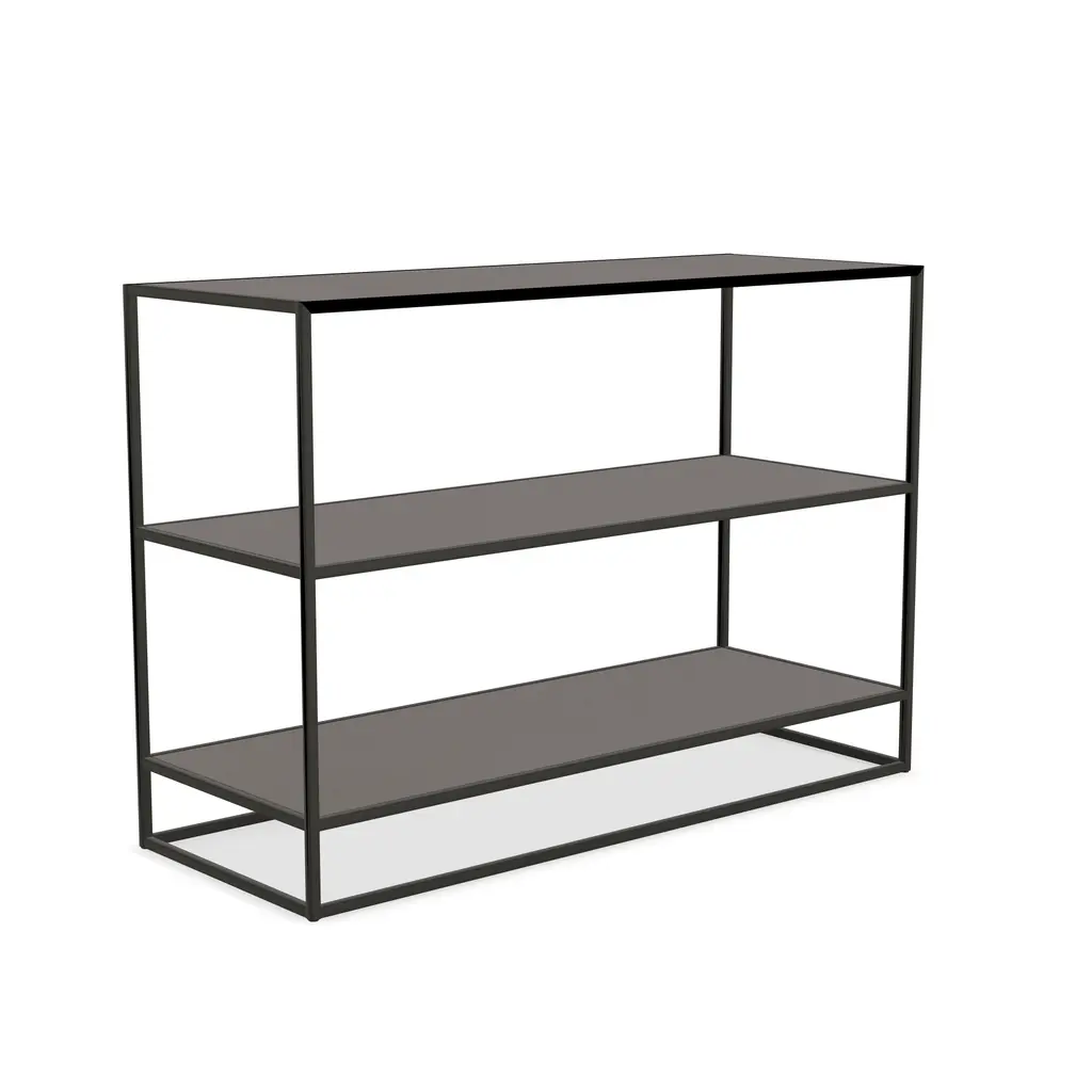 Modular and versatile, Stefan Diez’s New Order system is designed with ever-evolving spaces and needs in mind. Available in a wide range of options, this sleek bookshelf features a durable powder-coated aluminum frame.