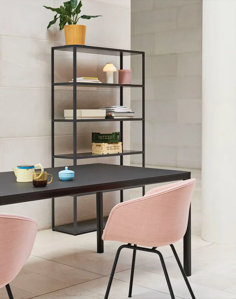 Modular and versatile, Stefan Diez’s New Order system is designed with ever-evolving spaces and needs in mind. Available in a wide range of options, this sleek bookshelf features a durable powder-coated aluminum frame.