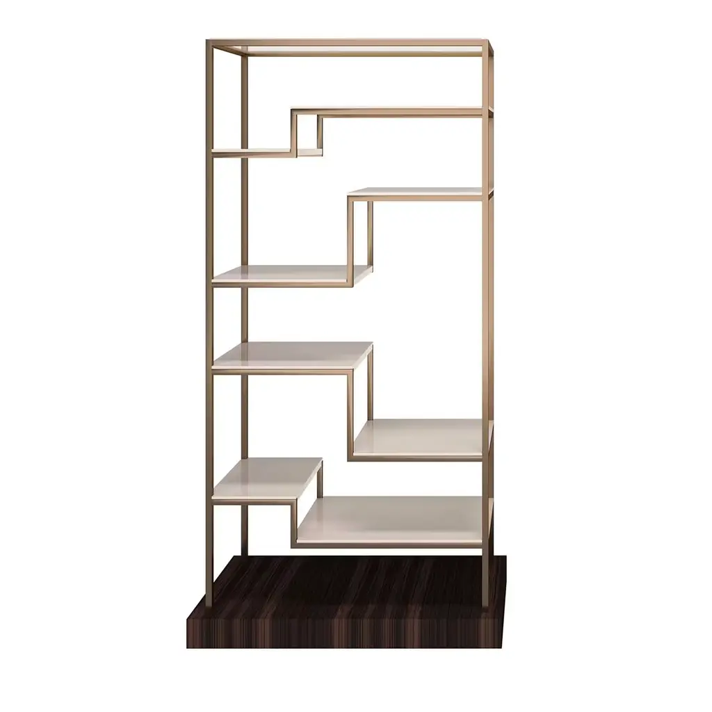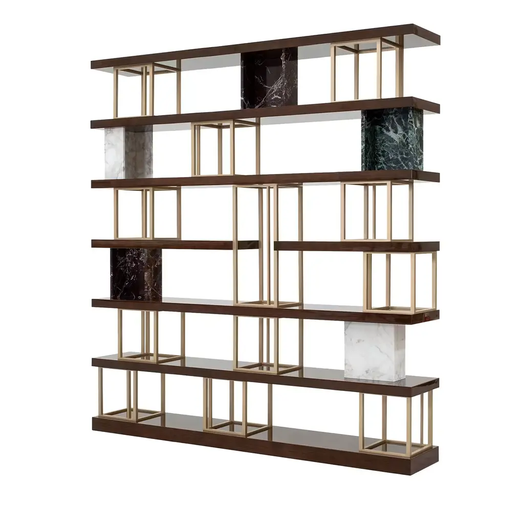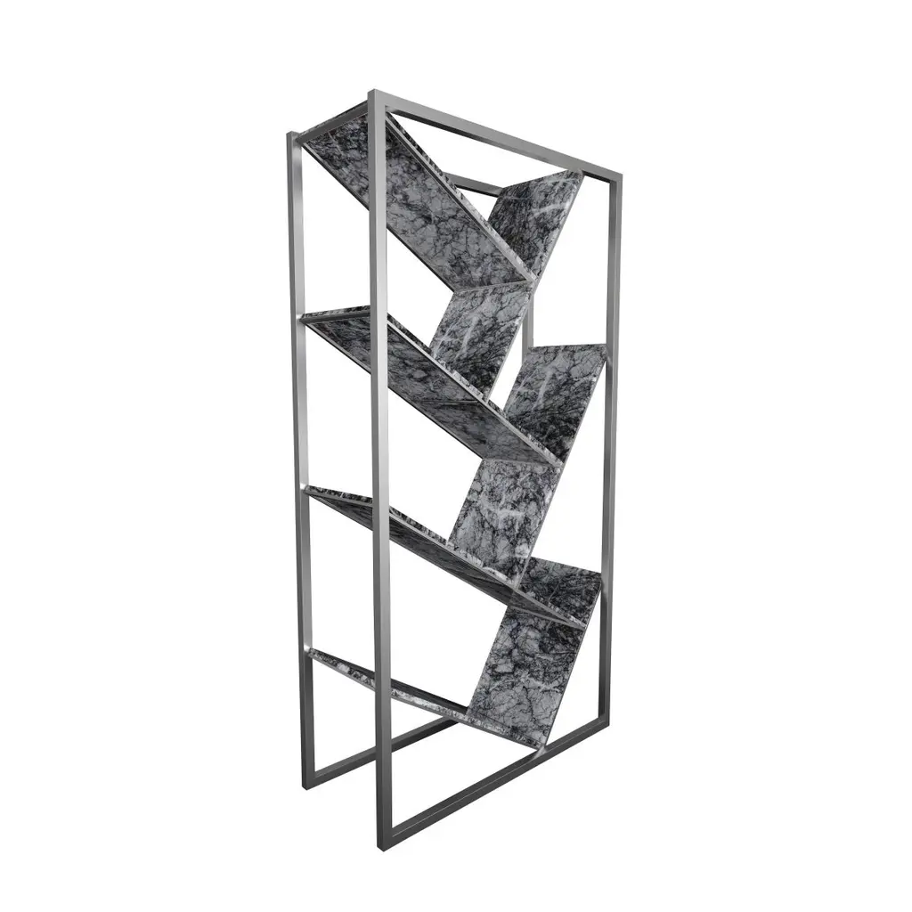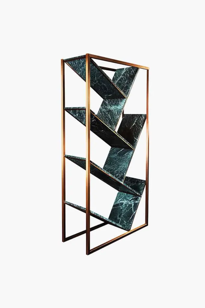 𝗣𝗿𝗼𝗱𝘂𝗰𝘁 𝗗𝗲𝘁𝗮𝗶𝗹𝘀:Modern designed bookshelf composed of 6 fixed shelves in a diagonal position. The backless feature of this bookshelf makes it practical to use as a room divider, which, when combined with a 2nd or 3rd bookshelf, can create a decorative mirroring effect.𝗧𝗿𝗮𝗱𝗶𝘁𝗶𝗼𝗻𝗮𝗹 𝗗𝗲𝘀𝗶𝗴𝗻:NORDST is a Danish company that's been producing quality marble furniture for customers all over the world for many years. The focus has always been to use beautiful stones in a contemporary design setting. NORDST is also a major furniture player producing for several renowned scandinavian brands, which is also why we have our own manufacturing base in China, where we will ship out from.𝗞𝗲𝘆 𝗙𝗲𝗮𝘁𝘂𝗿𝗲𝘀:→ Contemporary bookshelf with a unique diagonal arrangement of 6 fixed shelves for a modern and stylish look.→ Practical backless design allows for use as a room divider, adding functionality and aesthetic appeal to your living space.→ Combine with additional bookshelves to create a decorative mirroring effect, enhancing the visual impact in your room.→ Combine with additional bookshelves to create a decorative mirroring effect, enhancing the visual impact in your room.→ Whether used as a standalone piece or combined for a larger display, this bookshelf offers versatility and functionality for various room configurations.𝗠𝗮𝗿𝗯𝗹𝗲 𝗦𝗽𝗲𝗰𝘀:→ 1.7cm thickness→ Polished finish enhances the visual appeal𝗙𝗿𝗮𝗺𝗲: → Anti-grease treated→ Chamfer edge→ Brass Plated Steel frame provides a sleek and modern contrast𝐂𝐮𝐬𝐭𝐨𝐦𝐞𝐫𝐬 𝐜𝐚𝐧 𝐜𝐡𝐨𝐨𝐬𝐞 𝐟𝐫𝐨𝐦:𝐌𝐚𝐫𝐛𝐥𝐞 𝐂𝐨𝐥𝐨𝐫𝐬 →☑ White Mountain Marble☑ Black Marble☑ Green Marble☑ Calacatta Marble☑ Grey Marble☑ Brown Marble☑ Special White Marble☑ Red Travertaine Marble☑ Grey Travertaine Marble𝐅𝐢𝐧𝐢𝐬𝐡𝐞𝐬 →☑ Polished𝐅𝐫𝐚𝐦𝐞/𝐋𝐞𝐠𝐬 →☑ Power Coated Iron Black☑ Power Coated Iron White☑ Brass Plated Steel☑ Copper Plated Steel☑ Stainless Steel