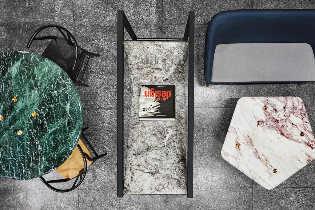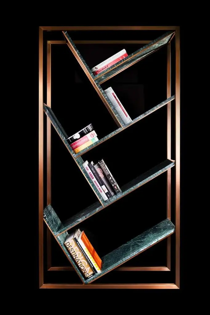 Nordst Philip Bookshelf, Italian Green Lightning Marble, Danish Modern Design