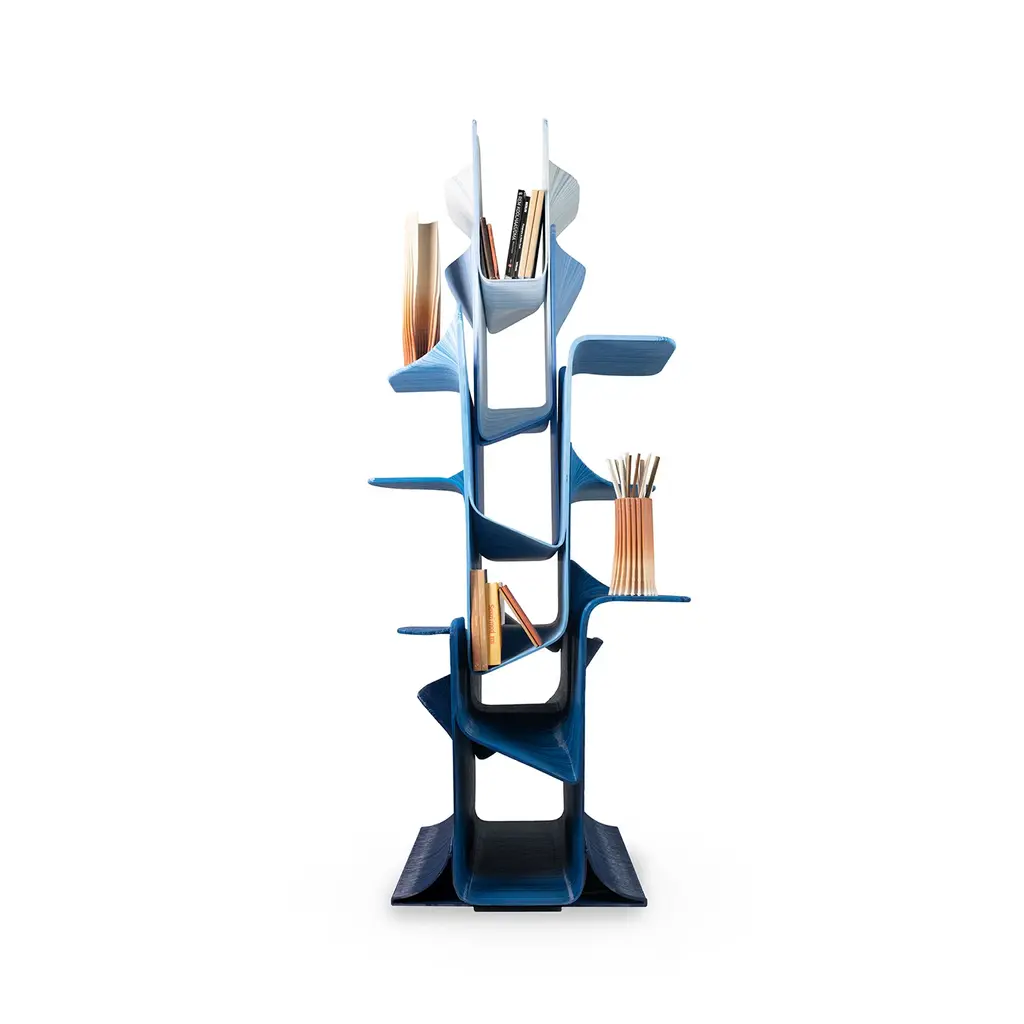 Nostrum is a modular display system, made up of 6 interlocking modules in colors that skilfully mix three similar shades, from the darkest to the lightest. A game of shades whose result is a play of chromatic dynamism which, together with the sinuous and harmonious forms of the modules, recalls the continuous breaking of the crests. The library is an ode to the 'mare nostrum' and its ability to unite and preserve the beauty and the identity of the Mediterranean. It can be printed in PETG or PLA.
