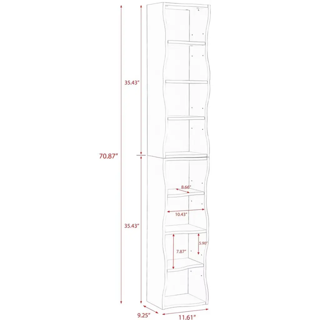 Orrd 8-layer Adjustable Ultra-thin Bookshelf, Tall Narrow Storage Rack With Wavy Border For Home Office