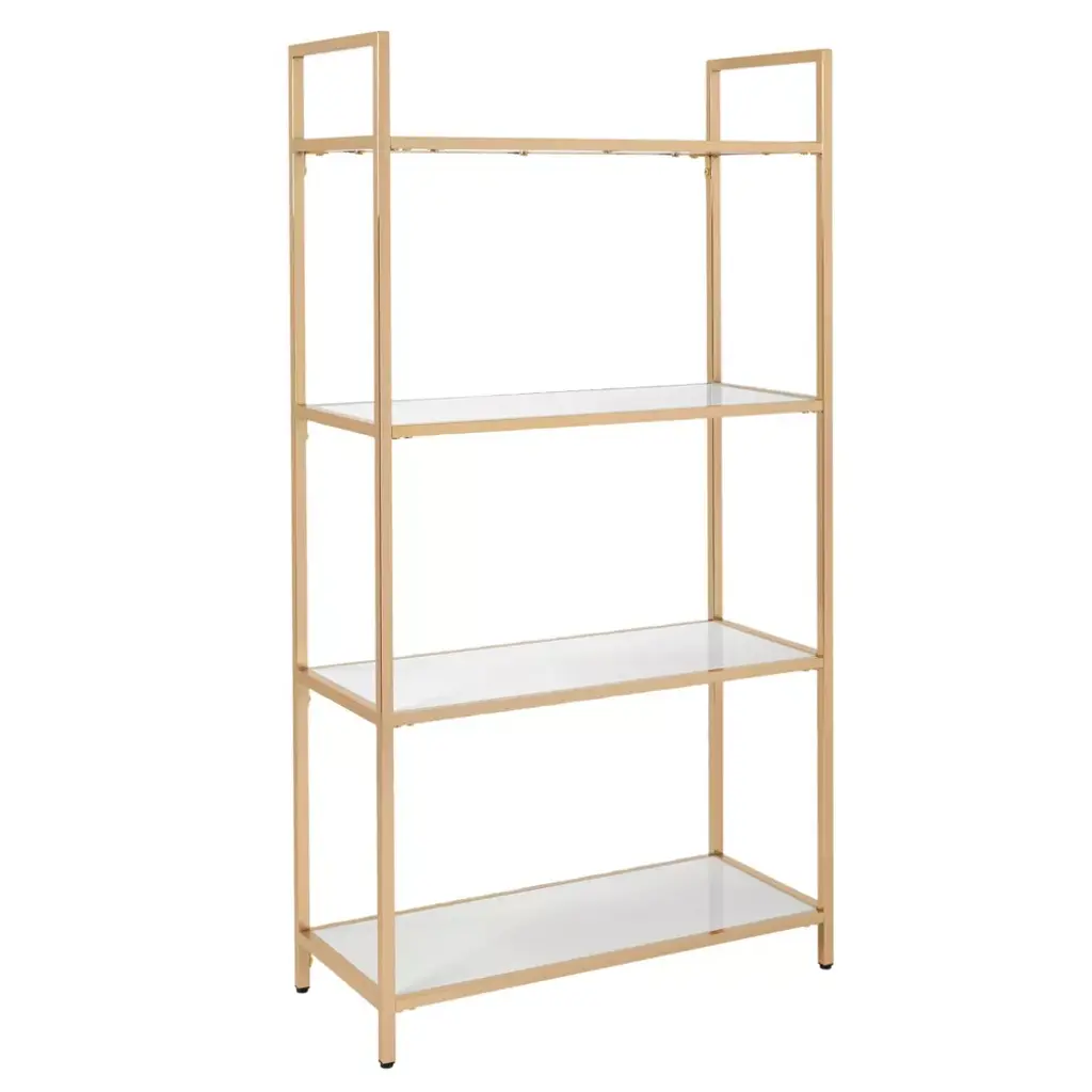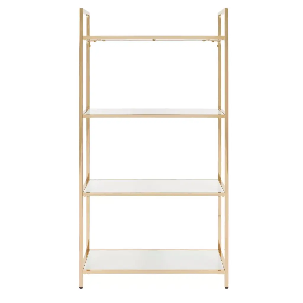 Osp Home Furnishings 60" Alios Bookshelf White/gold: Chic, 4-shelf Metal Frame, Laminate Surface, Modern Office Furniture