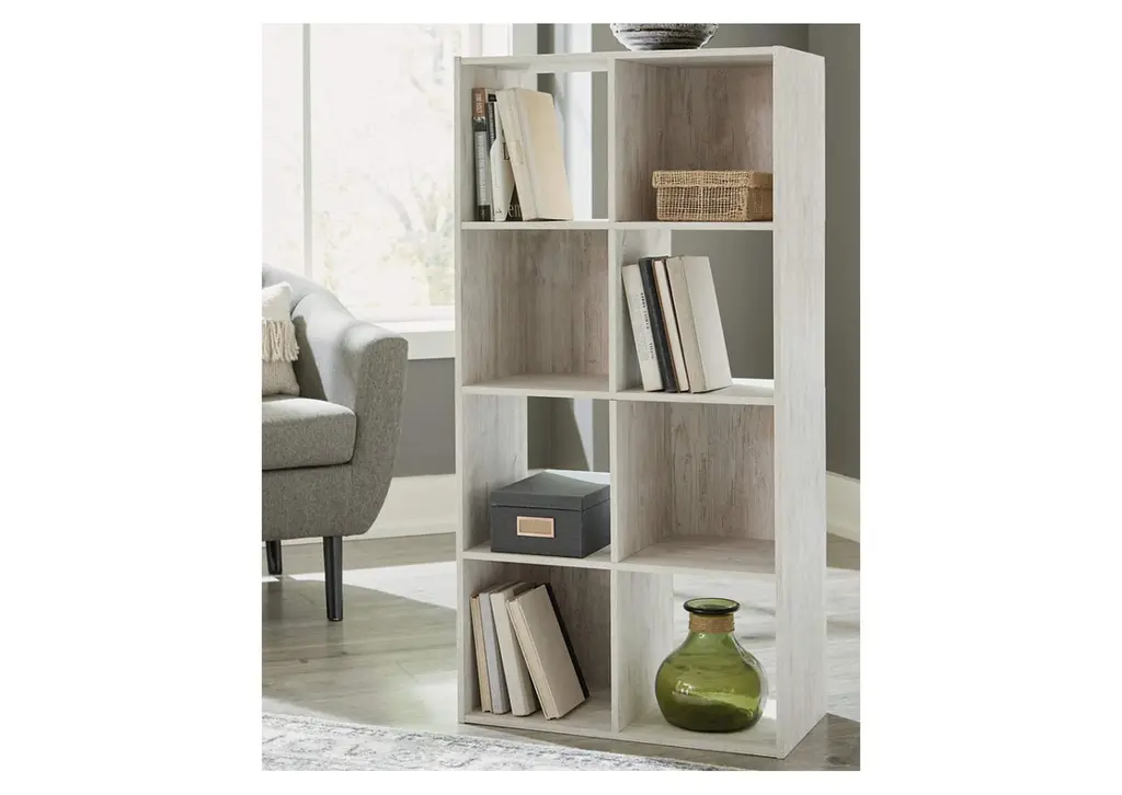 If it’s coastal chic or cottage quaint style you long for, the Paxberry whitewashed eight-cube organizer invites you to go to town. Its distinctive weatherworn finish conveys an easy-breezy sensibility, perfect for a restful bedroom retreat. Open and closed backs make it abundantly practical. Weight 46.000 lbs. (20.7kgs.)