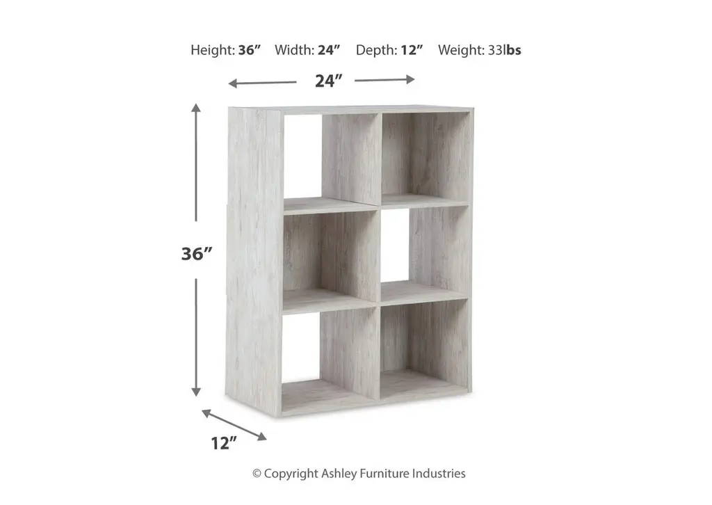 If it’s coastal chic or cottage quaint style you long for, the Paxberry whitewashed six-cube organizer invites you to go to town. Its distinctive weatherworn finish conveys an easy-breezy sensibility, perfect for a restful bedroom retreat. Open and closed backs make it abundantly practical. Weight 36.000 lbs. (16.2kgs.)