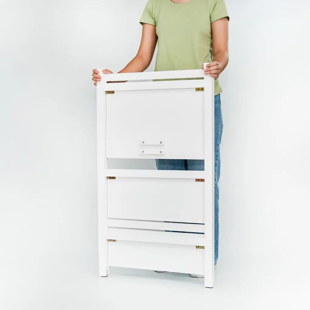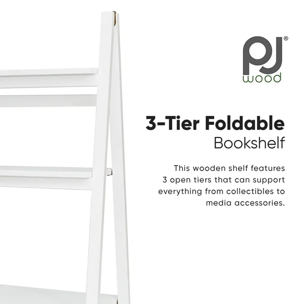 Pj Wood 3 Tier Foldable Bookshelf Wooden Storage Display Rack For Home Living Room, Office, Or Small Spaces Organization, White