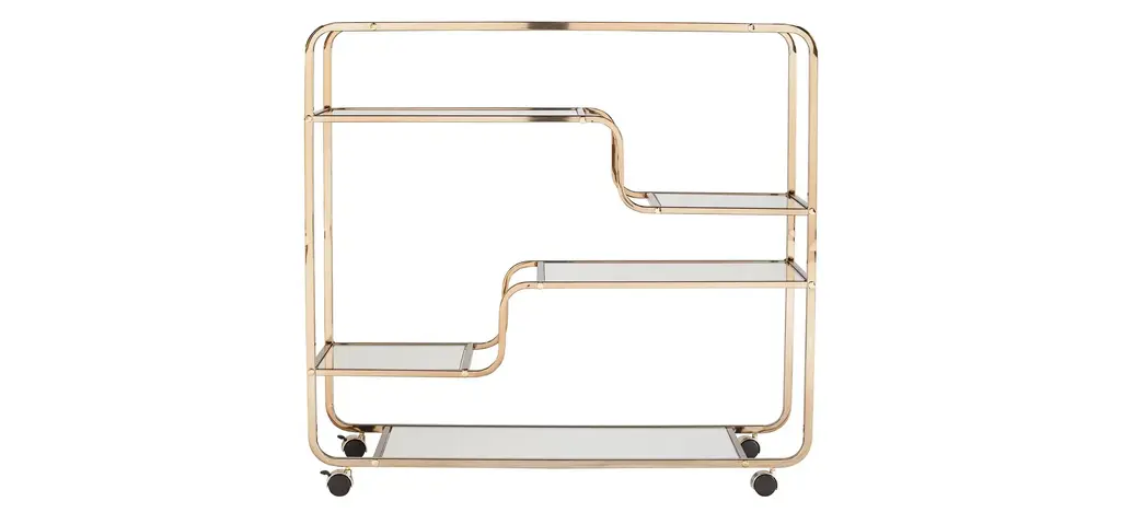 Portable Polished Brass And Mahogany Cyclopedia Bookshelf With Wheels