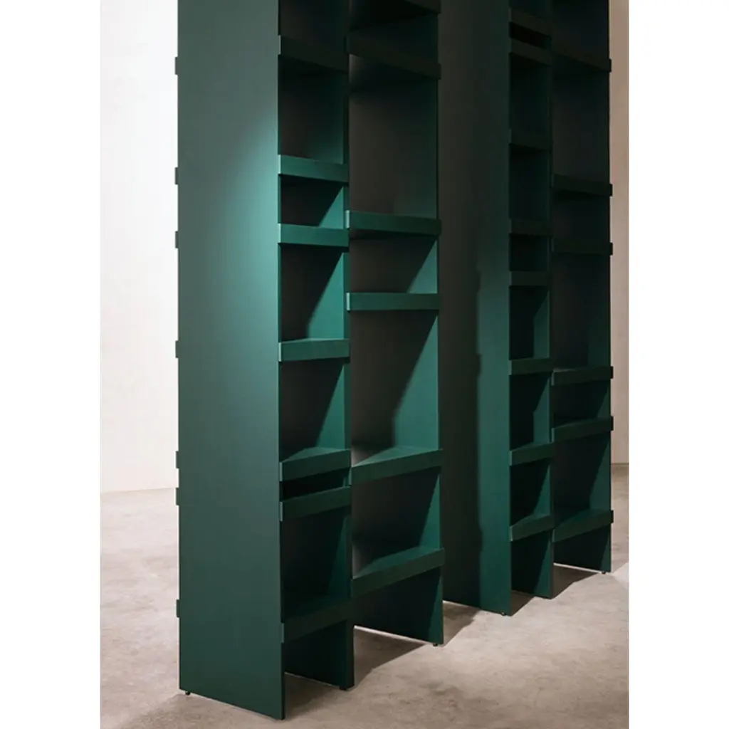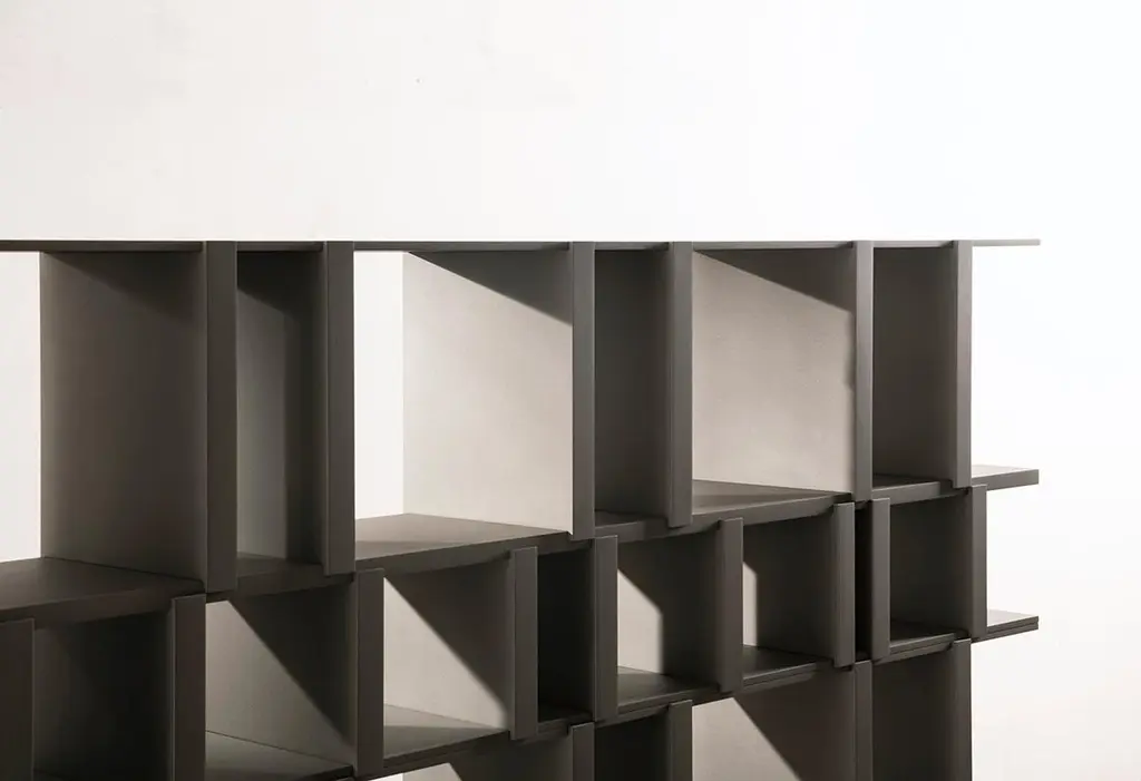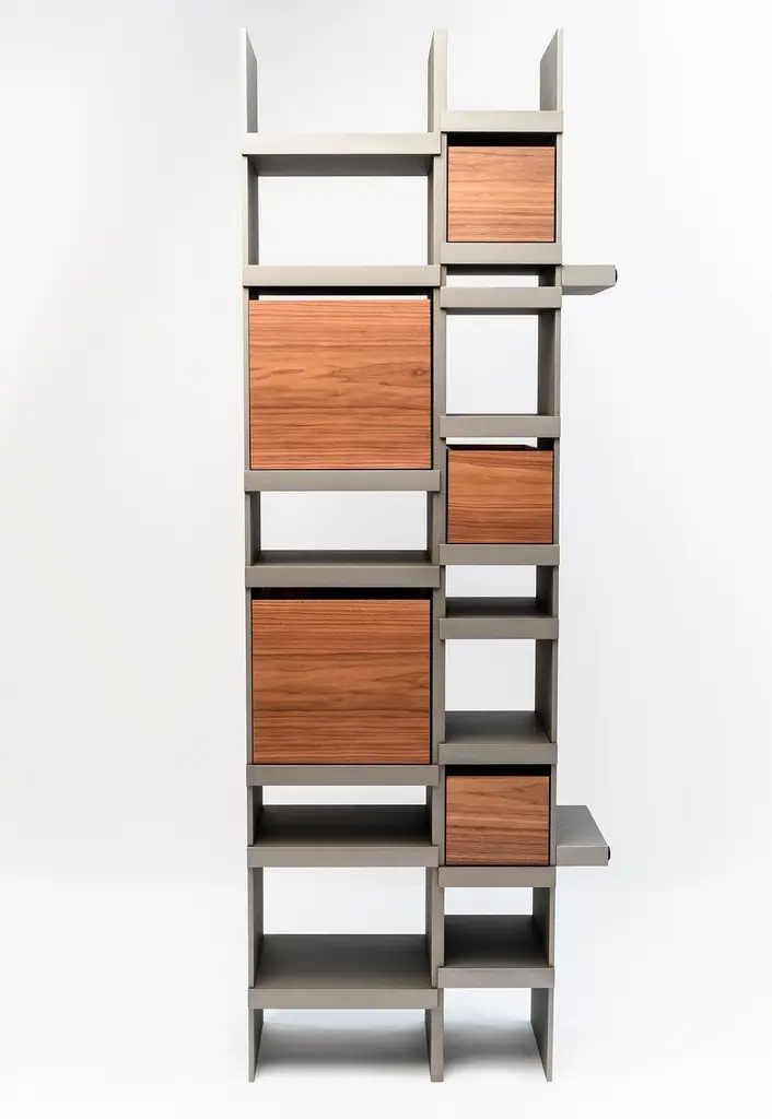 Pyrite bookshelf by Luca NichettoMaterials:Dimensions: W 200 x D 31.6 x H 69 cmInspired by optical illusion artworks, the design of Pyrite bookshelf amazes through an unexpecteddistribution between empty and full spaces and a structure where horizontal and vertical seems to bereversed.The thin lines of the frame aim for invisibility while contrasting the thicker dividers, in an unusual combination of thicknesses. The different Size and shapes of the sections combine to give a sense of movement, while drawers in leather or wood can be added to the bookshelf. Pyrite can be used as a single module with twoshelves, functioning as a standing alone piece, or it can be combined with others horizontally so tocreate a larger bookshelf system or either repeated vertically, to cover the length of entire walls.Italian designer Luca Nichetto is the Art Director of La Manufacture.Born in Venice in 1976, he studied there at the IUAV, the Venice University Institute of Architecture, from which he graduated in Industrial Design. In 1999, he started his career designing his first projects for Salviati using Murano glass. He went on to collaborate with Foscarini as a designer and consultant. In 2006, he established his own studio in Venice, which specialised in Industrial Design and design consulting. Five years later, in 2011, Nichetto opened a second studio in Stockholm, Sweden, where he now works andresides. Throughout his career, Nichetto has served as Art Director for a number of international designbrands.