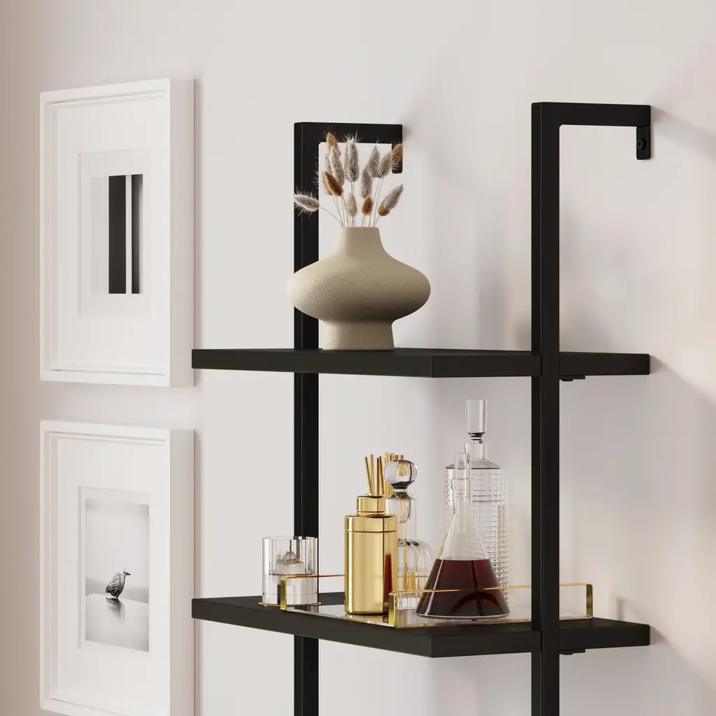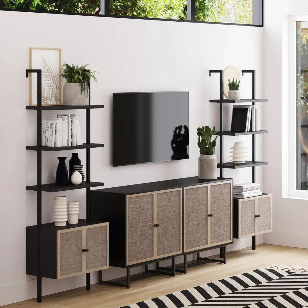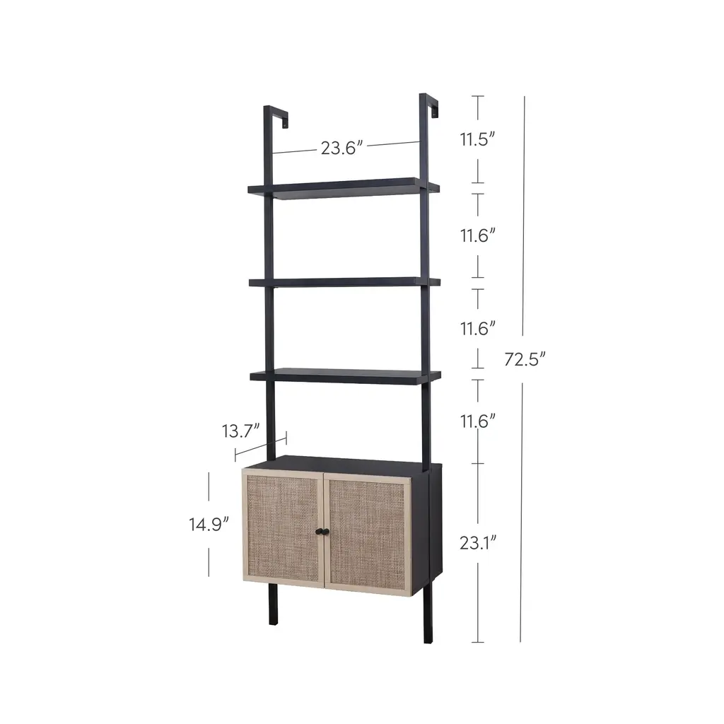 Rattan Ladder Wall Bookshelves With Doors Black (Set Of 2)