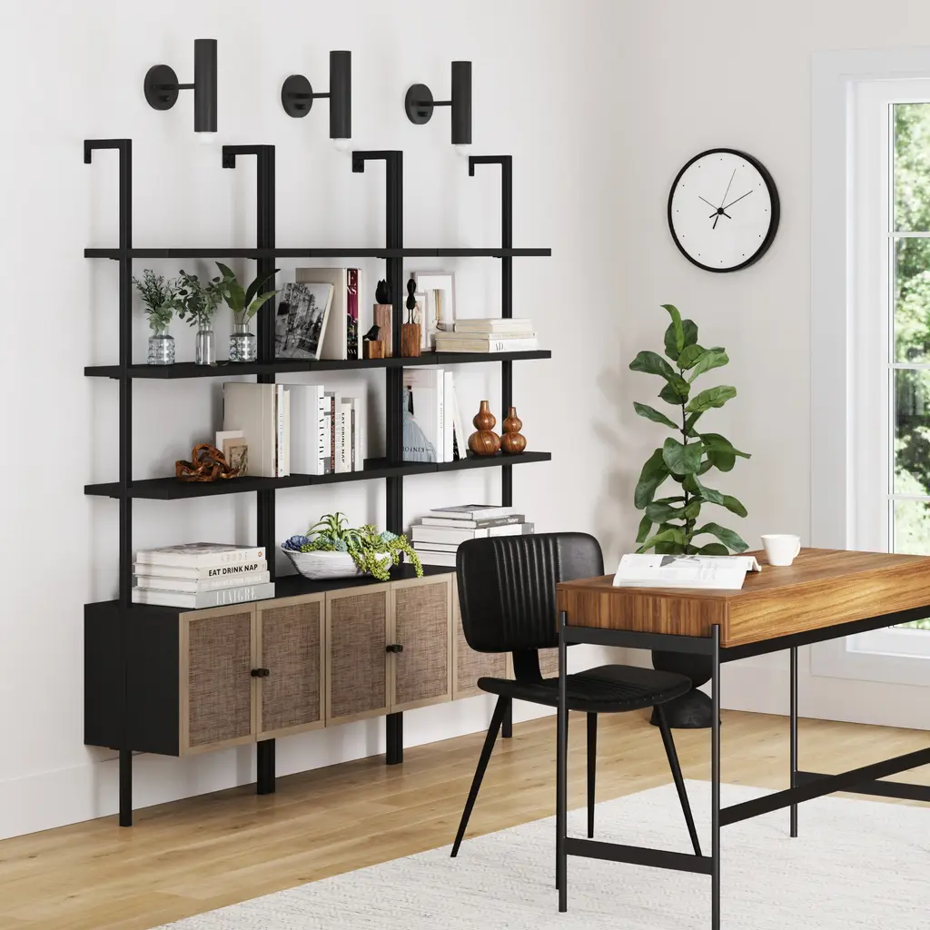 Rattan Ladder Wall Bookshelves With Doors Black (Set Of 3)