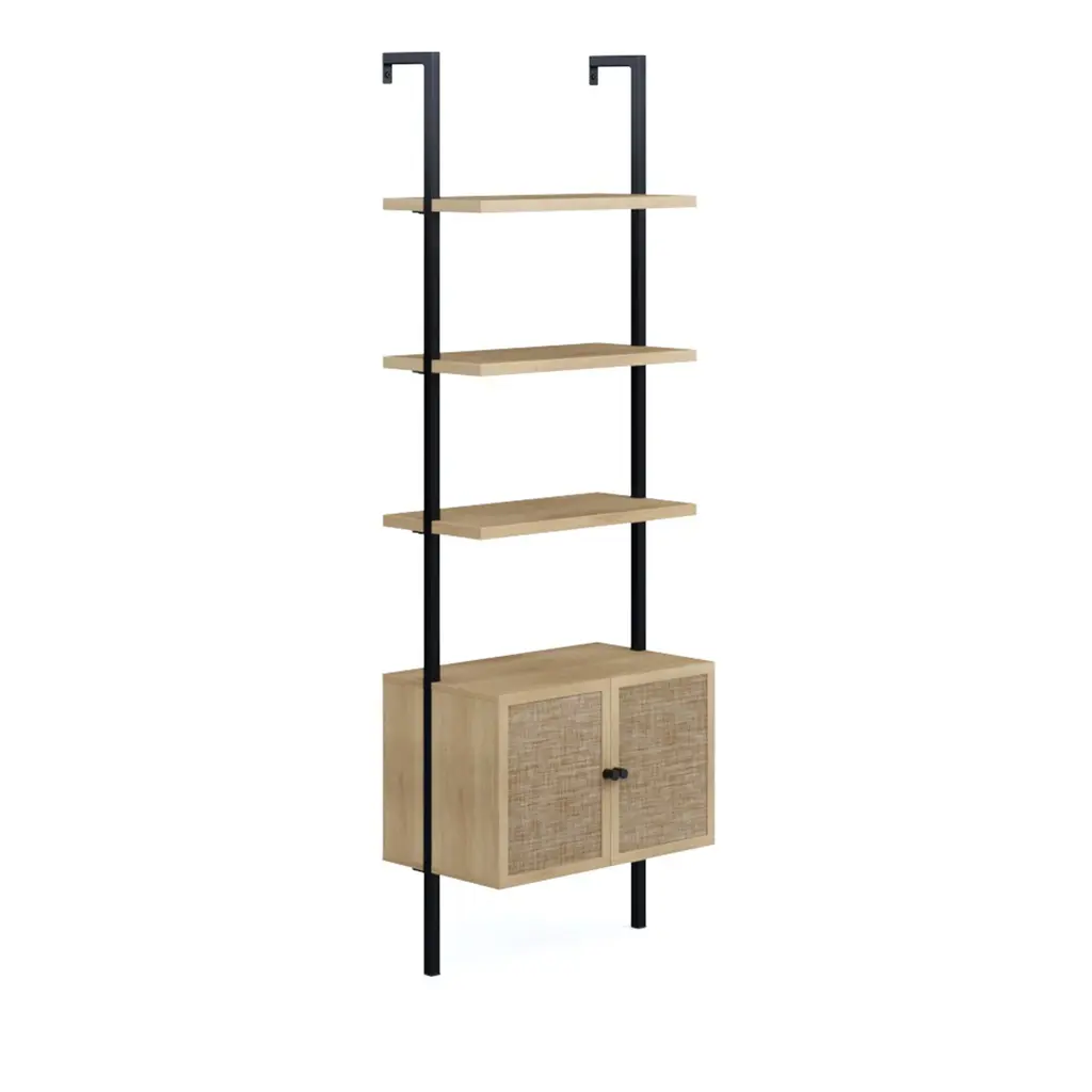 Rattan Ladder Wall Bookshelves With Doors Light Oak (Set Of 3)