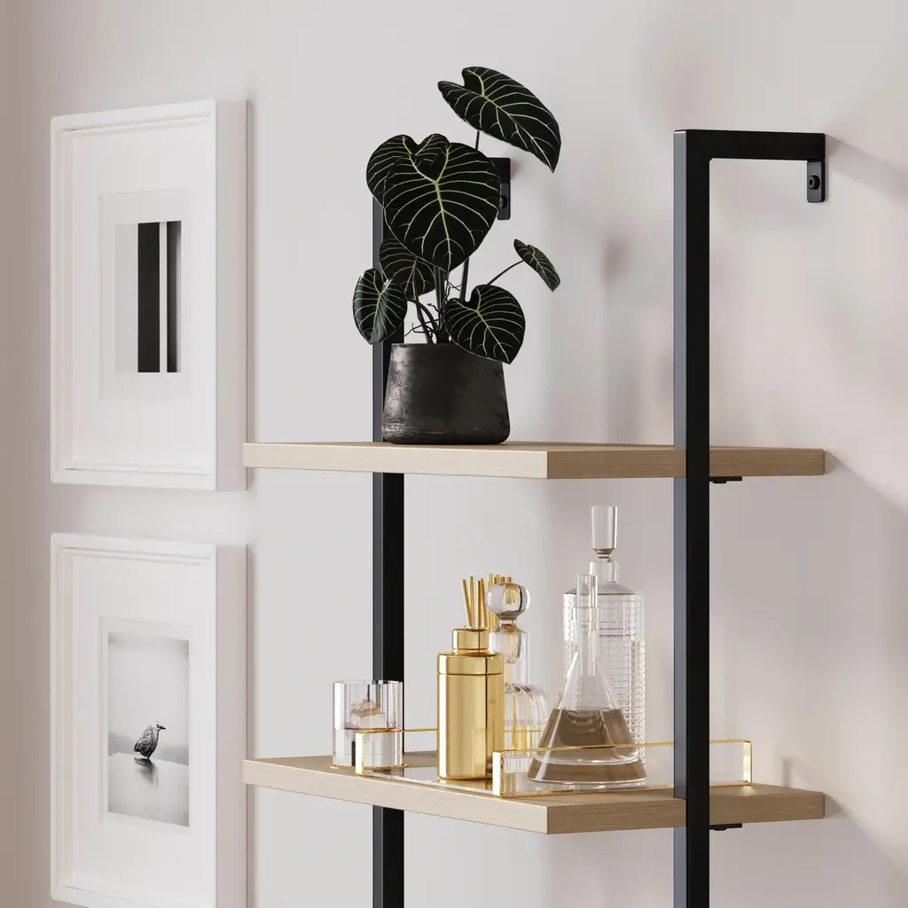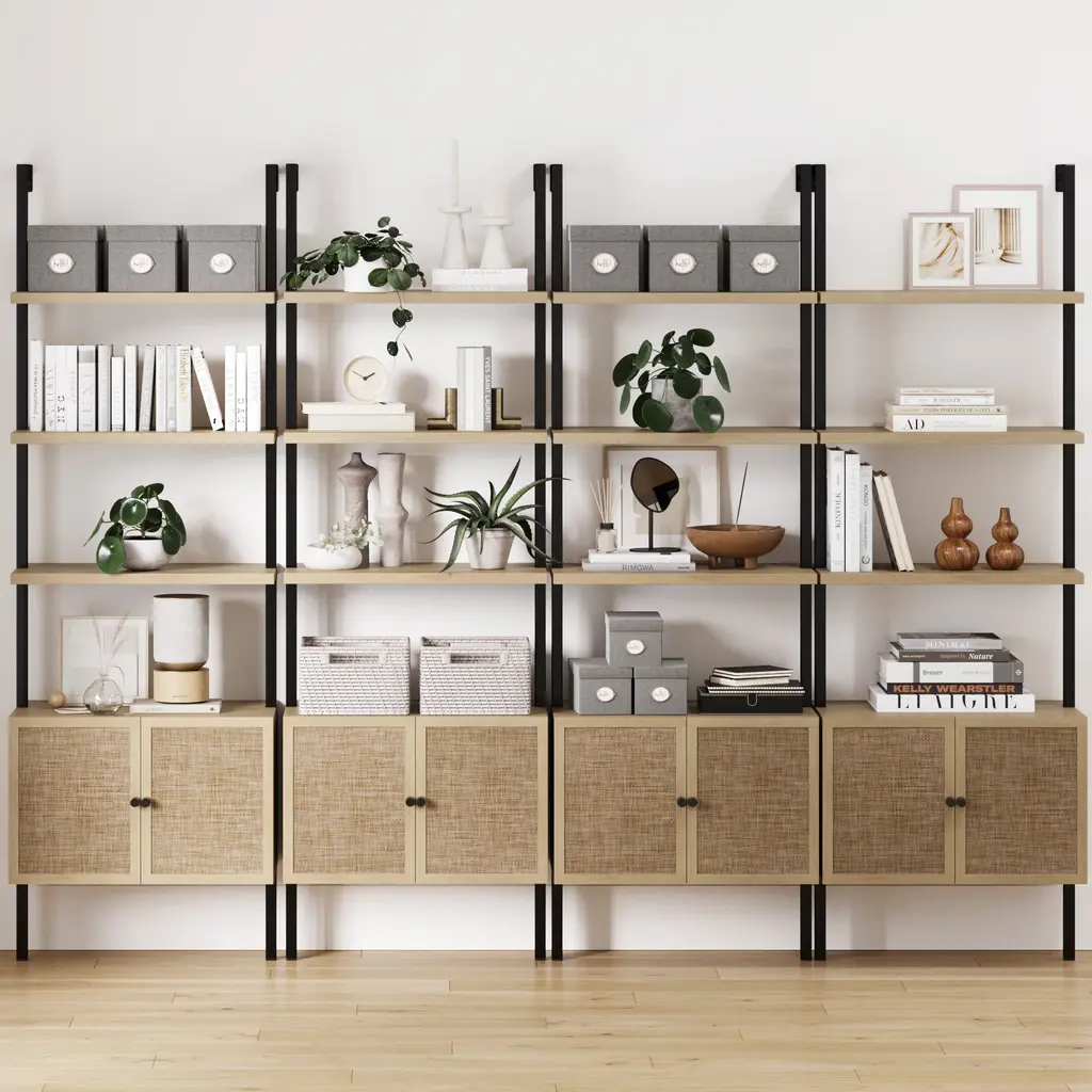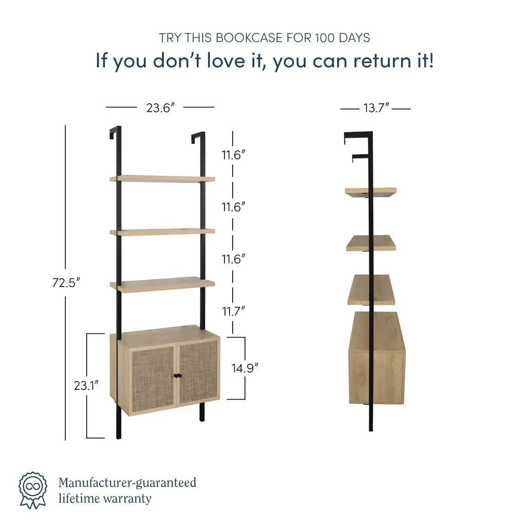 Rattan Ladder Wall Bookshelves With Doors Light Oak (Set Of 4)