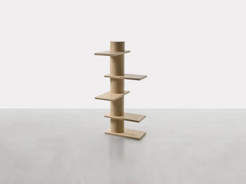 Roma Bookshelf by SomaschiniDimensions: W 65 x D 65 x H 161 cmMaterials: Solid Roman Travertine structure.Boookshelf in solid Roman Travertine.About: Somaschini is a new-born brand, with a strong, innovative attitude, and rich artisan heritage in 1940s Brianza — a hard-working region of Lombardy, internationally renowned for the production of high quality design. It thrives, however, on new ideas and contemporaneity and never lapses into nostalgia but rather masters its own high craft. It shows a certain obstinacy in pursuing techniques honed over decades, preferring to make them speak through new languages. Hence it challenges tradition with a bold, intelligent, and confident approach.